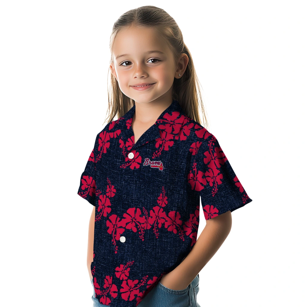 Show your Atlanta Braves spirit in tropical style. Hibiscus blooms highlighted with team logo for a vibrant Hawaiian shirt. Available for men, women and kids. Great for matching looks.