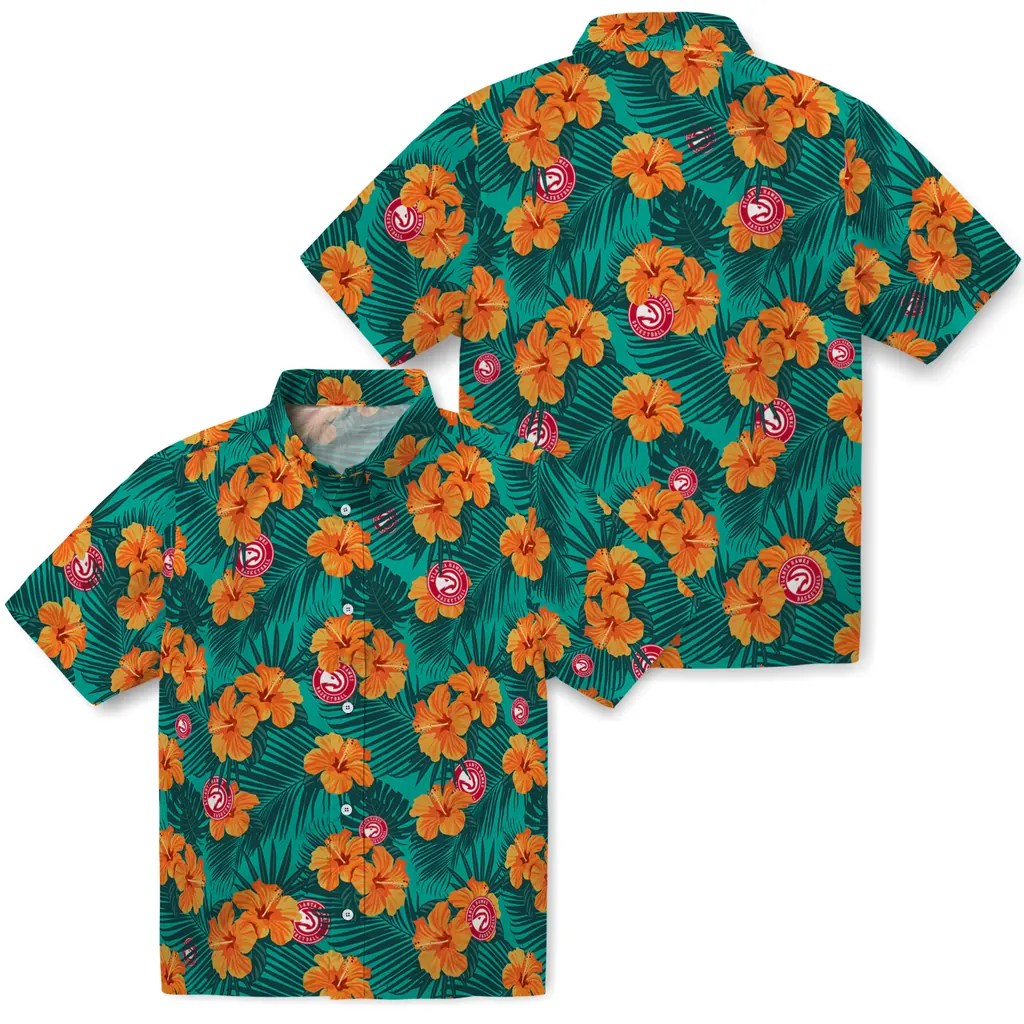 Atlanta Hawks Hawaiian Shirt – Hibiscus and Palm Leaves