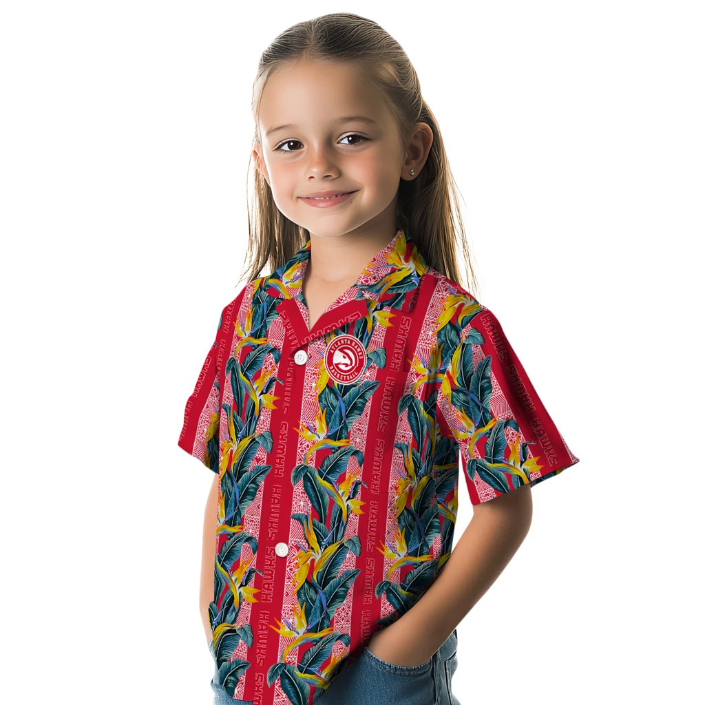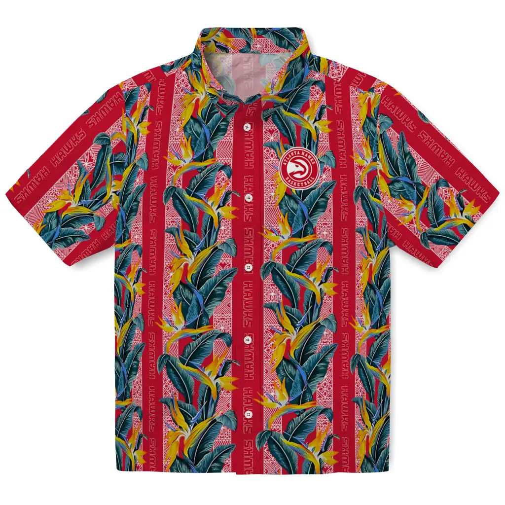 Show your Atlanta Hawks spirit in tropical style. Tropical paradise with Bird of Paradise flowers, tropical leaves, and team logo. Available for men, women and kids. Great for matching looks.
