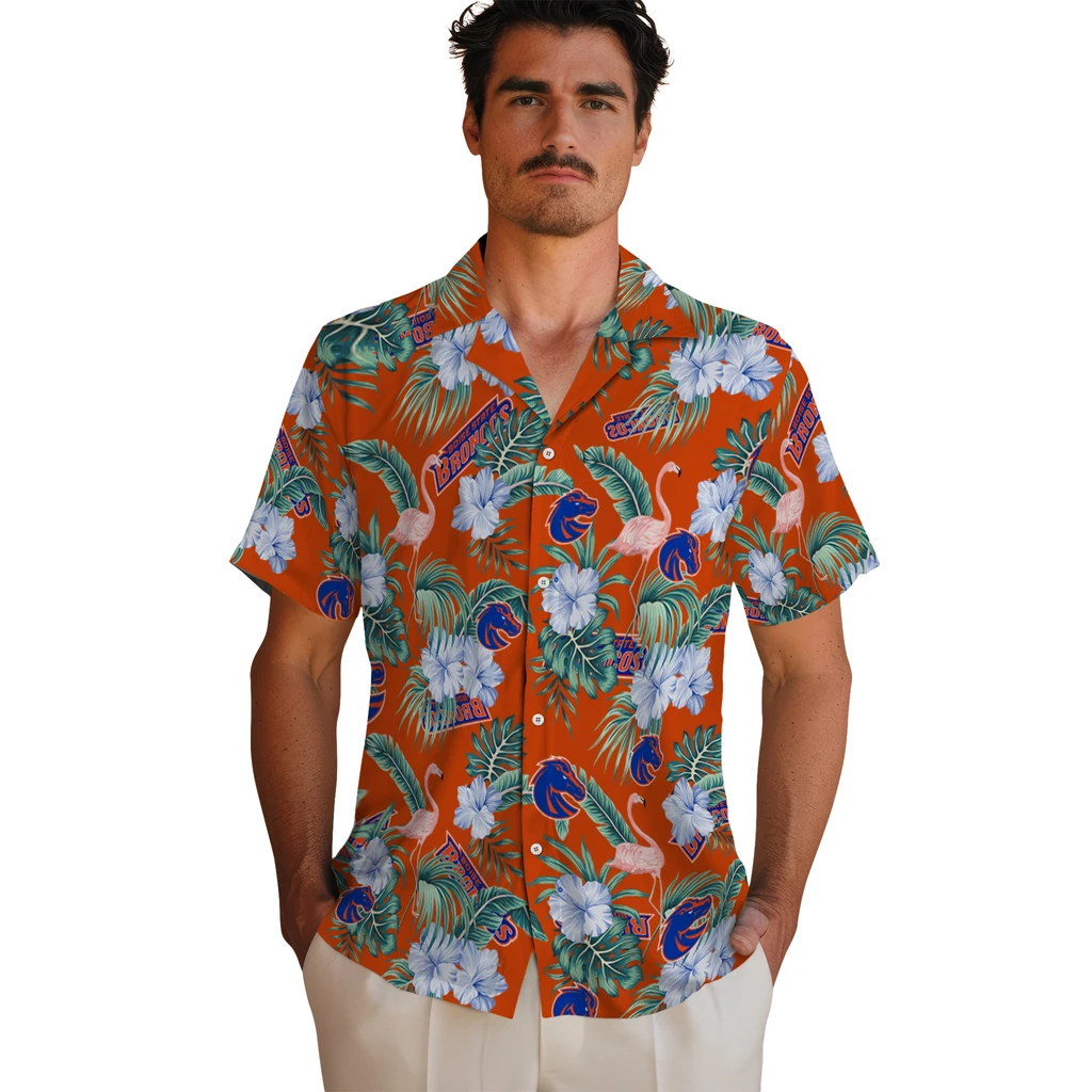 Boise State Broncos Hawaiian Shirt – Flamingo and Hibiscus