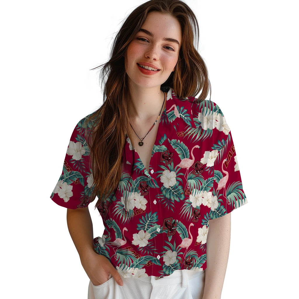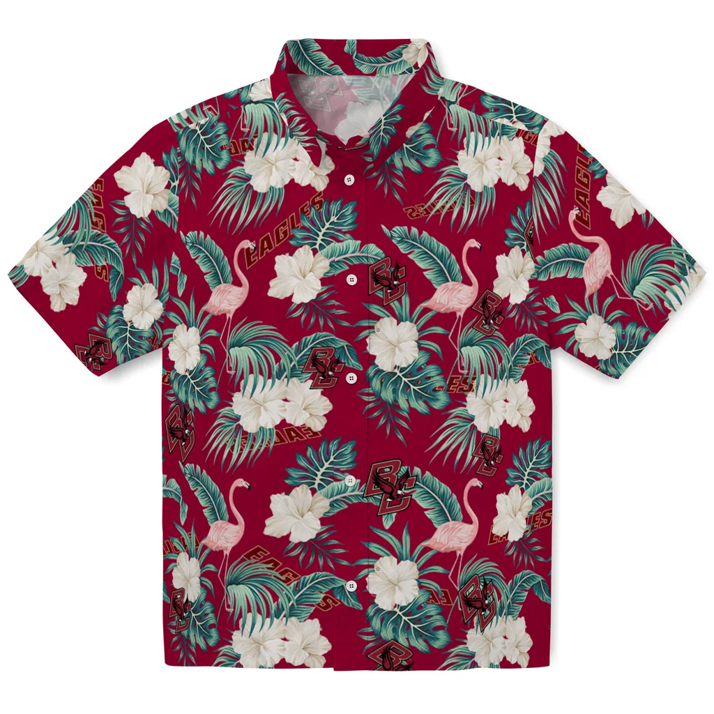 Boston College Eagles Hawaiian Shirt – Flamingo and Hibiscus