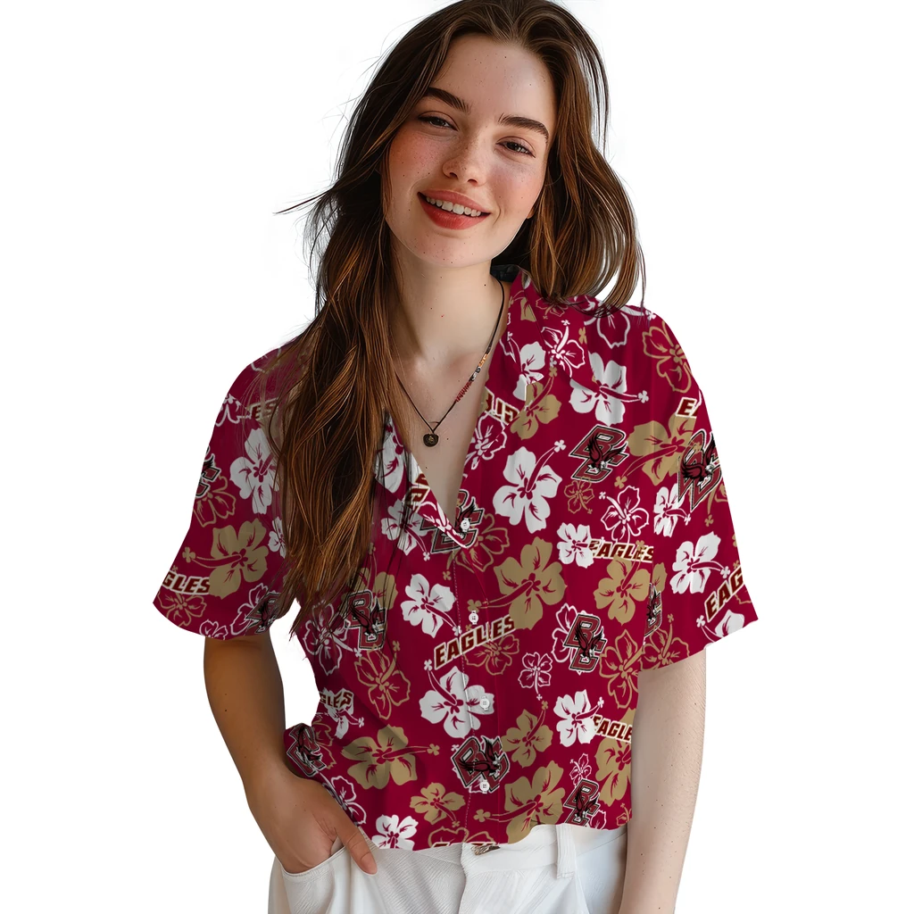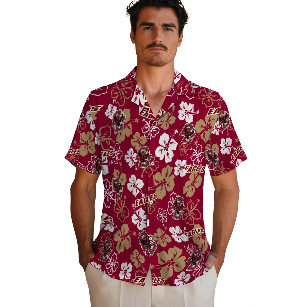 Boston College Eagles Hawaiian Shirt – Hibiscus Flower Design