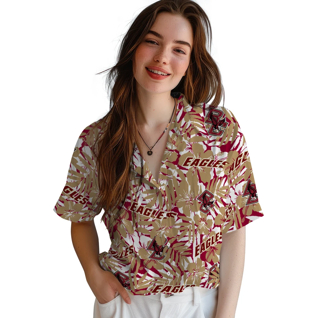Boston College Eagles Hawaiian Shirt – Hibiscus Overlay