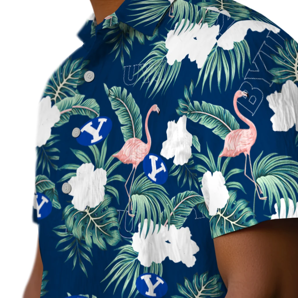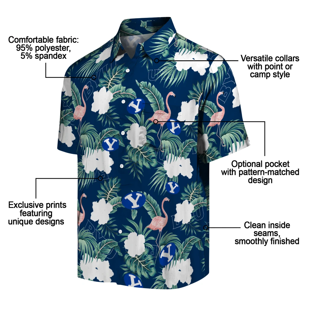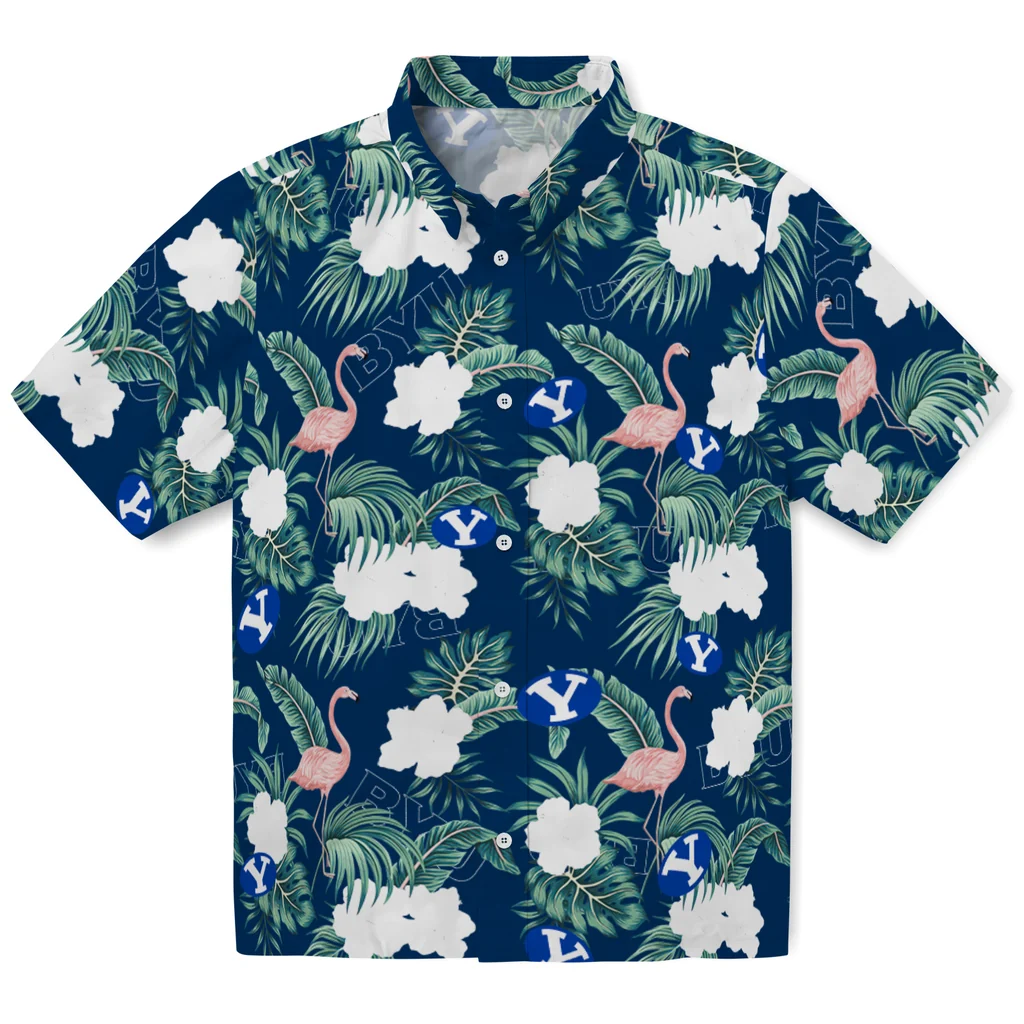 BYU Cougars Hawaiian Shirt – Flamingo and Hibiscus