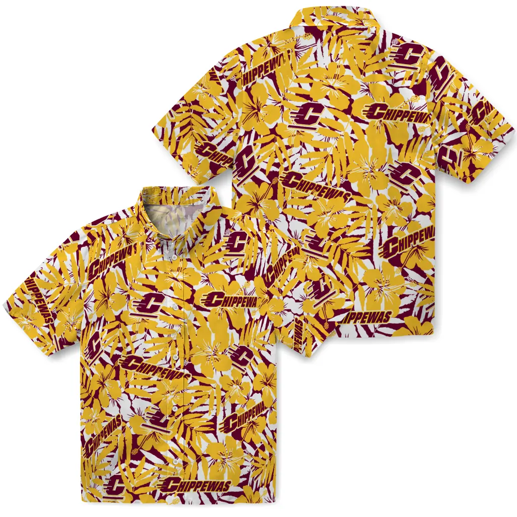 Central Michigan Chippewas Hawaiian Shirt – Hibiscus Overlay