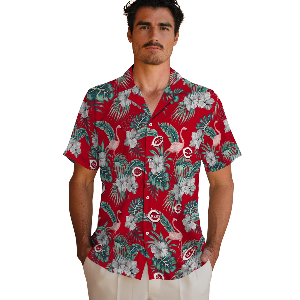 Cincinnati Reds Hawaiian Shirt – Flamingo and Hibiscus
