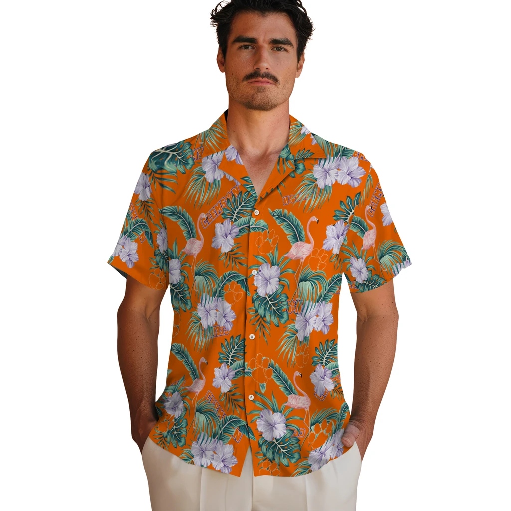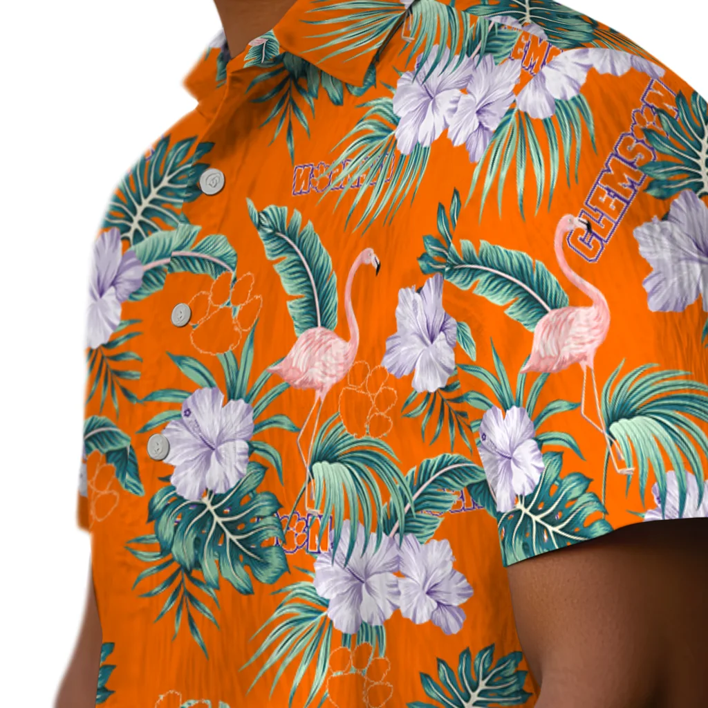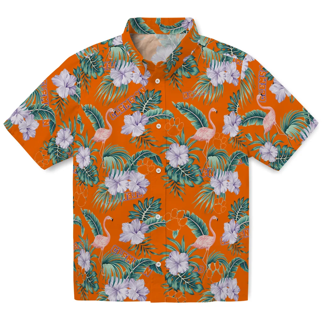 Clemson Tigers Hawaiian Shirt – Flamingo and Hibiscus