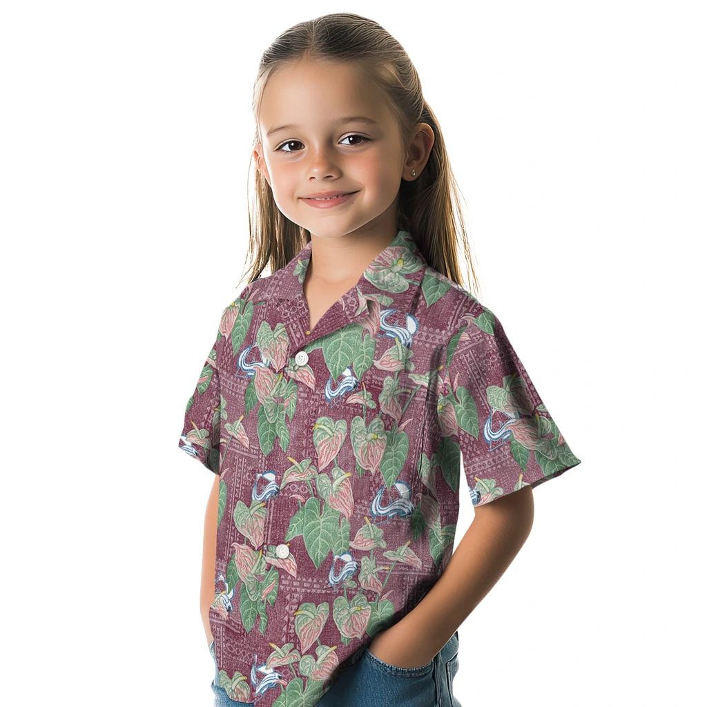 Show your Colorado Avalanche spirit in tropical style. Tropical leaves and anthurium accented with team logo for a vibrant Hawaiian shirt. Available for men, women and kids. Great for matching looks.