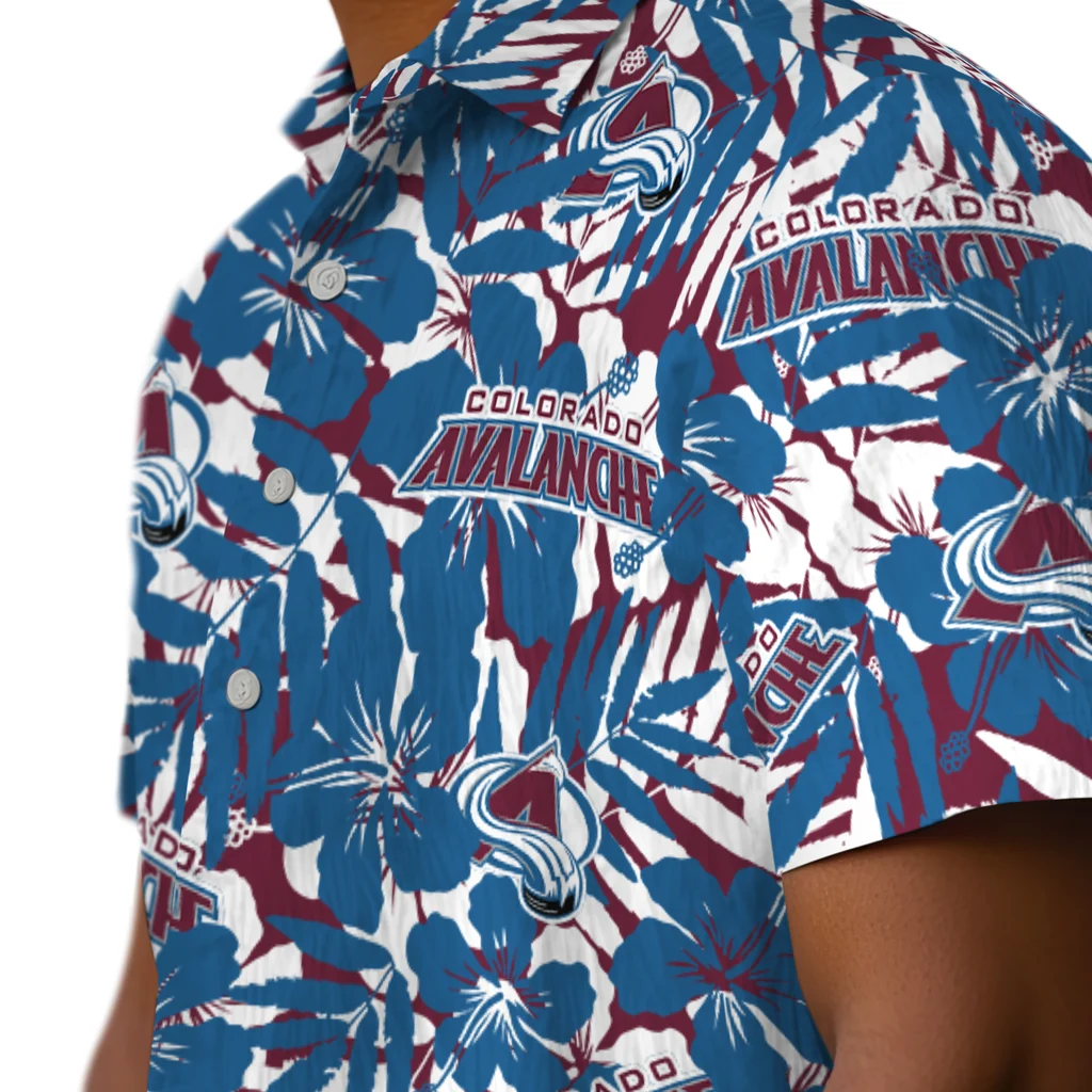 Colorado Avalanche Hawaiian Shirt – Hibiscus Overlay