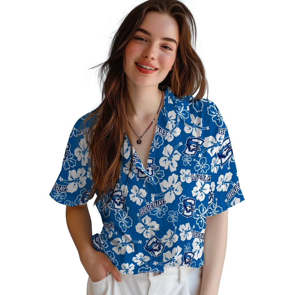 Creighton Bluejays Hawaiian Shirt – Hibiscus Flower Design