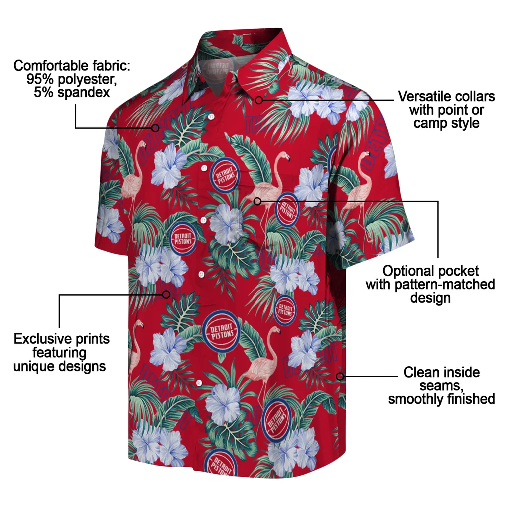 Detroit Pistons Hawaiian Shirt – Flamingo and Hibiscus