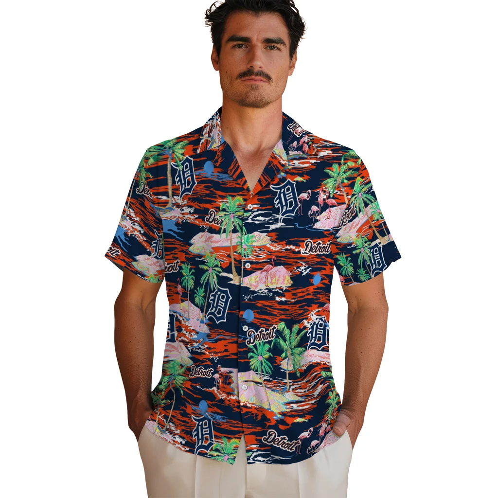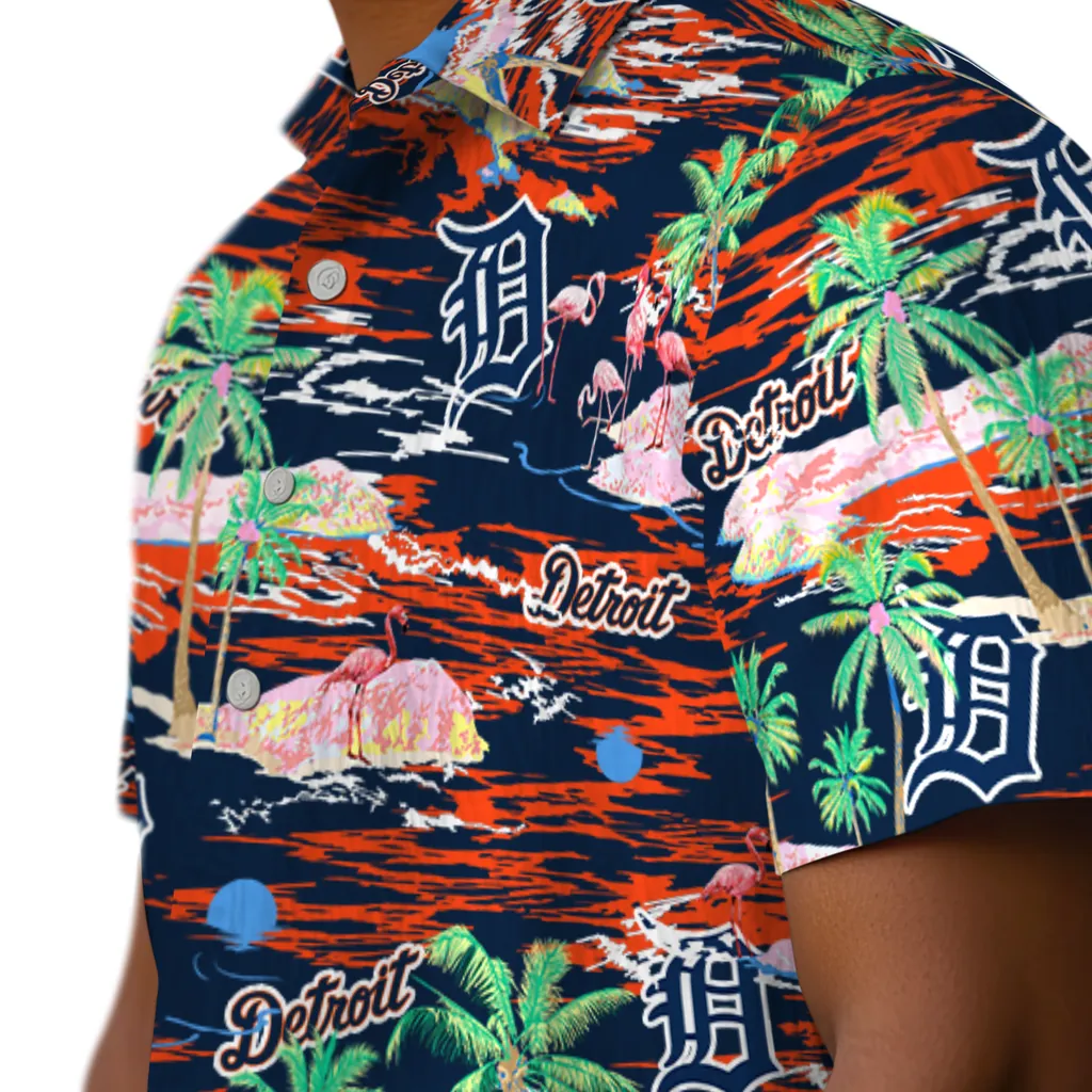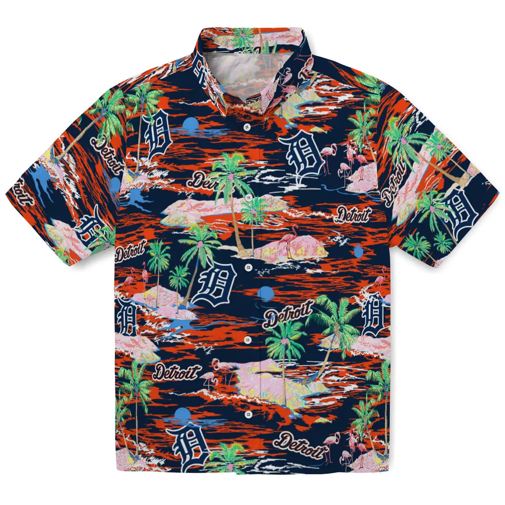 Show your Detroit Tigers spirit in tropical style. Beach island scenes with flamingos and team logo for a summer-ready Hawaiian shirt. Available for men, women and kids. Great for matching looks.
