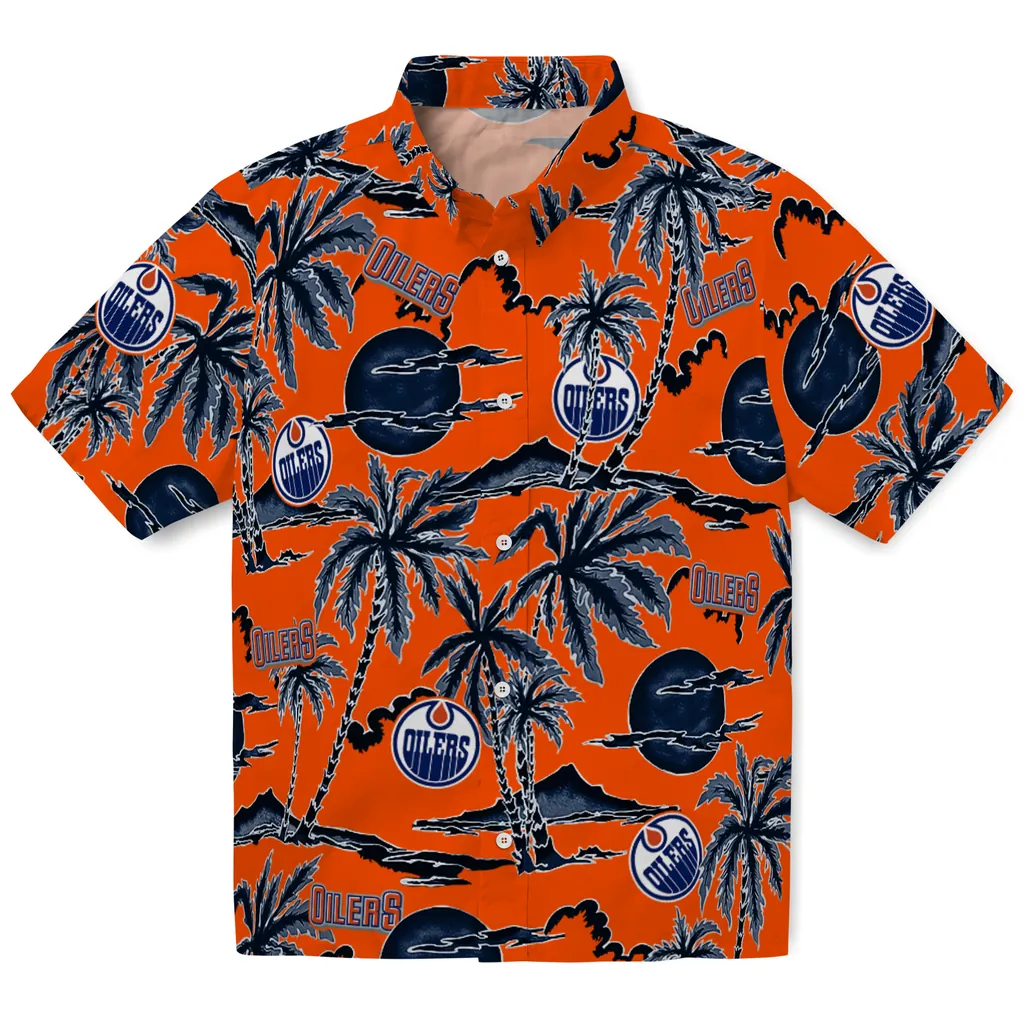 Edmonton Oilers Hawaiian Shirt – Palm Sunset
