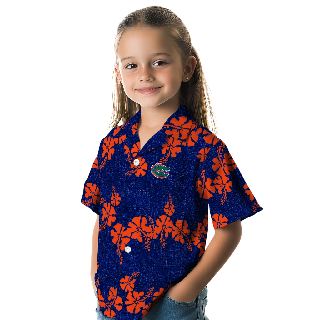 Show your Florida Gators spirit in tropical style. Hibiscus flower pattern paired with team logo for a bright tropical style. Available for men, women and kids. Great for matching looks.