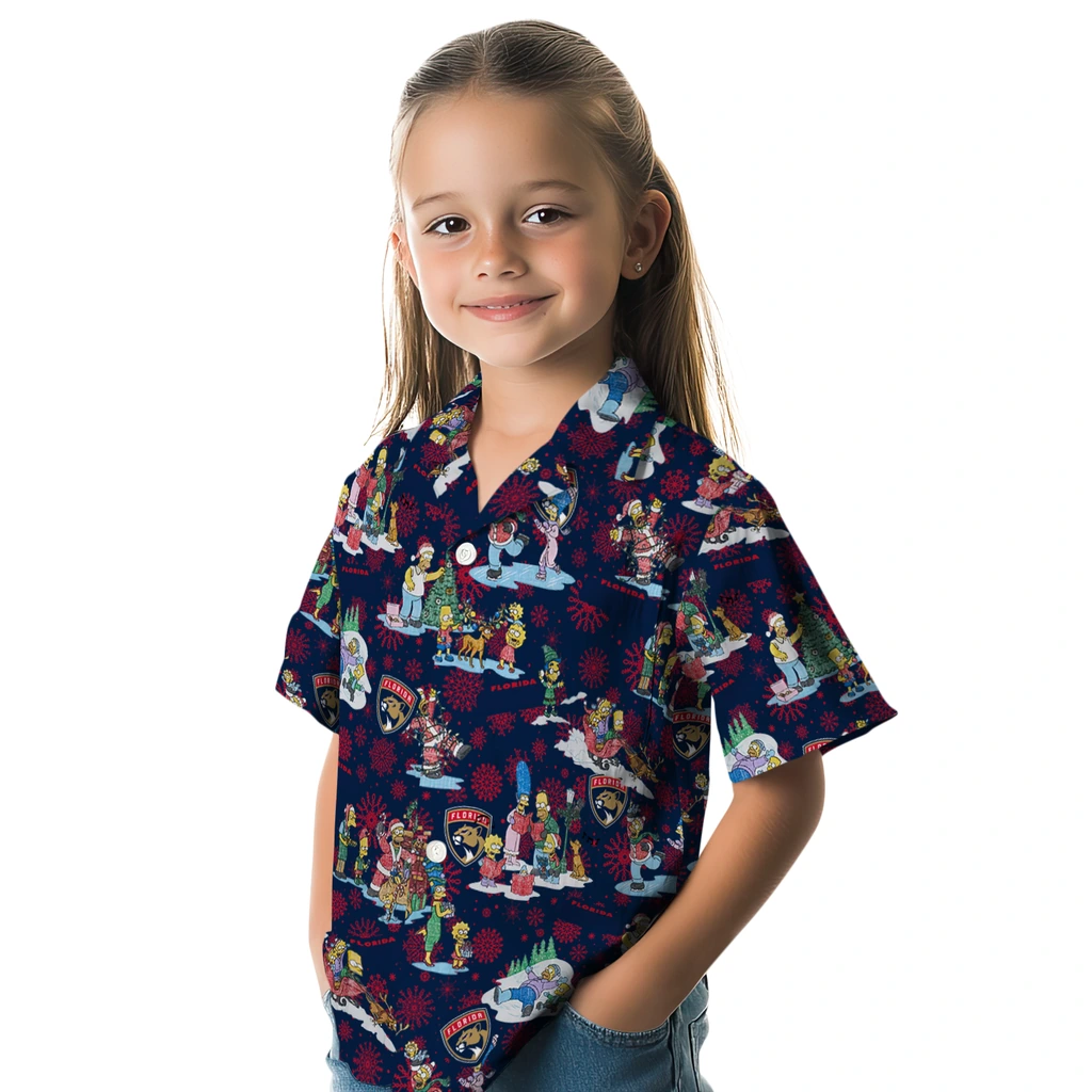 Show your Florida Panthers spirit in tropical style. Simpsons Christmas cartoon characters with team logo for a festive Hawaiian style. Available for men, women and kids. Great for matching looks.