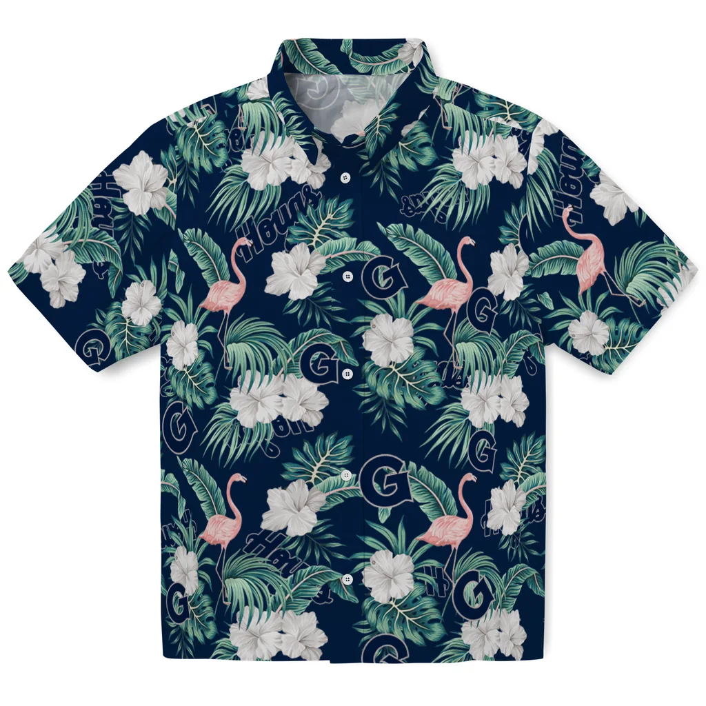 Georgetown Hoyas Hawaiian Shirt – Flamingo and Hibiscus