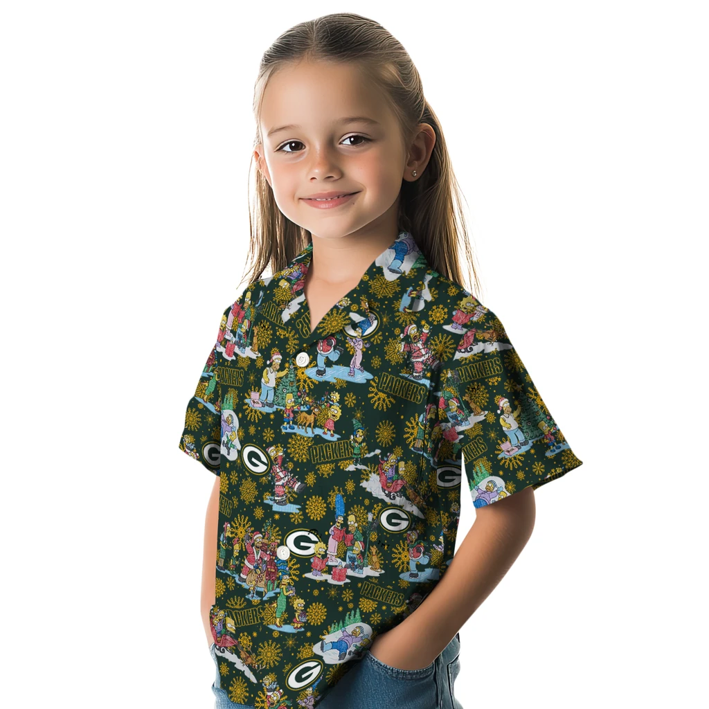Show your Green Bay Packers spirit in tropical style. Simpsons Christmas cartoon characters with team logo for a festive Hawaiian style. Available for men, women and kids. Great for matching looks.