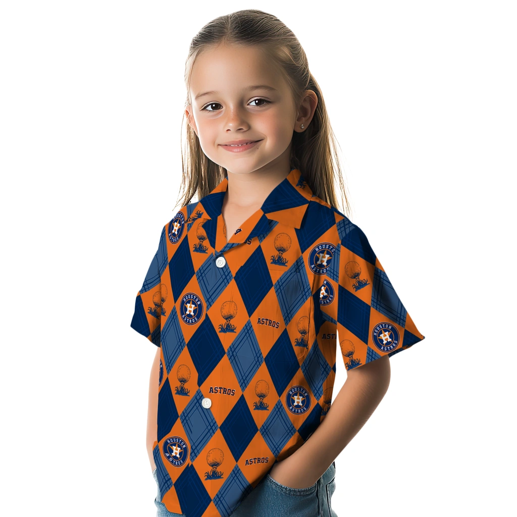 Show your Houston Astros spirit in tropical style. Golf ball and plaid pattern highlighted by team logo for a sporty tropical style. Available for men, women and kids. Great for matching looks.