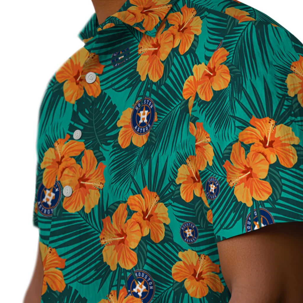 Houston Astros Hawaiian Shirt – Hibiscus and Palm Leaves