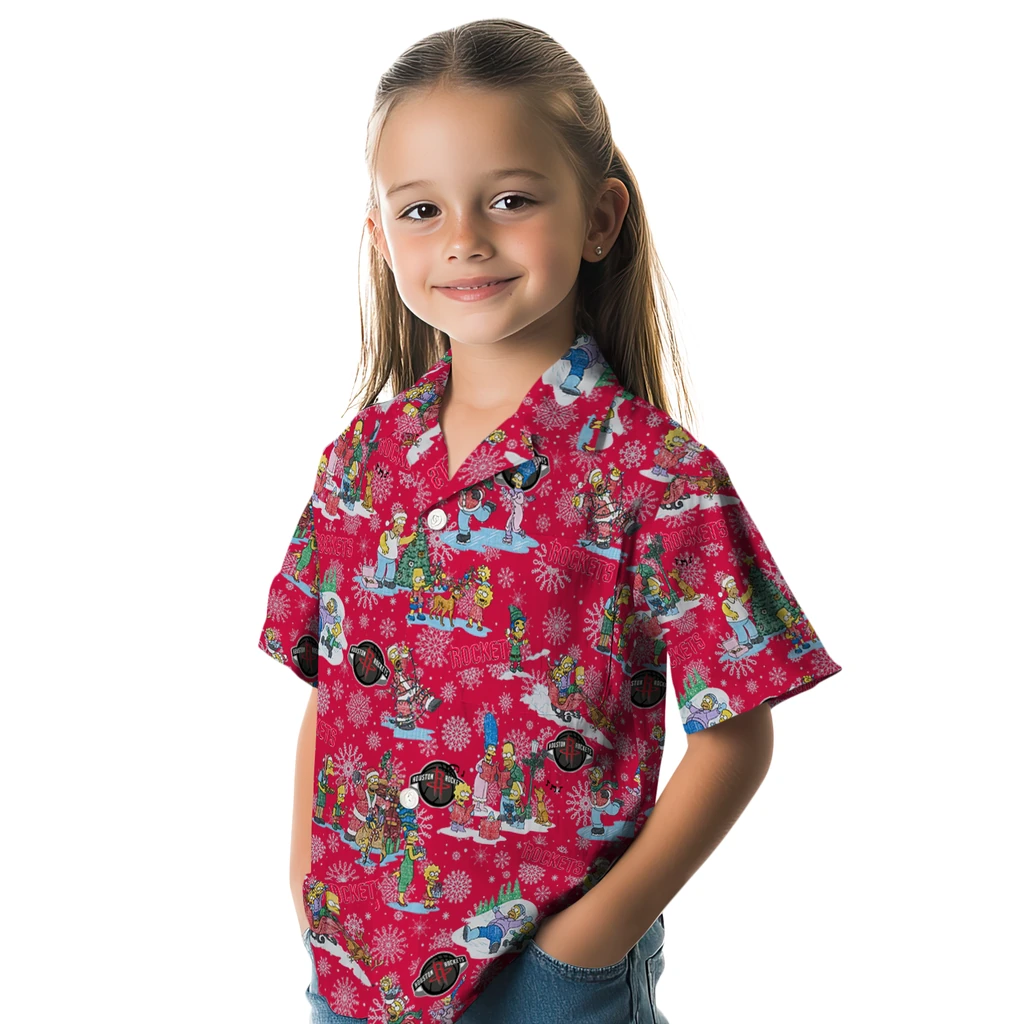 Show your Houston Rockets spirit in tropical style. Simpsons Christmas cartoon characters with team logo for a festive Hawaiian style. Available for men, women and kids. Great for matching looks.