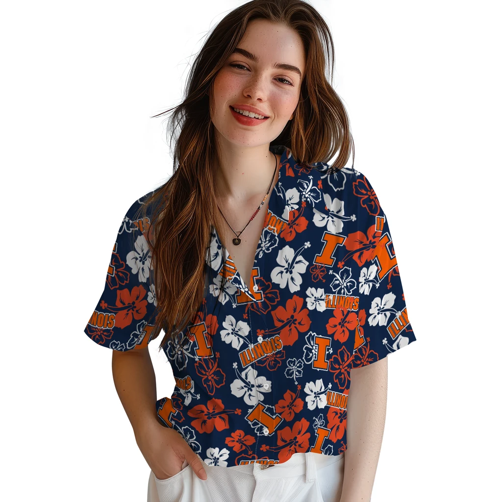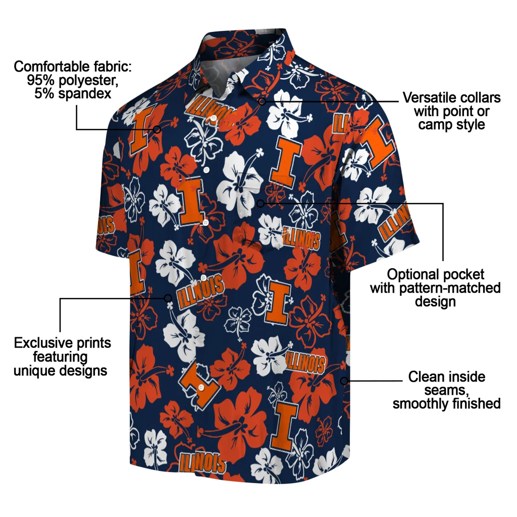 Illinois Fighting Illini Hawaiian Shirt – Hibiscus Flower Design