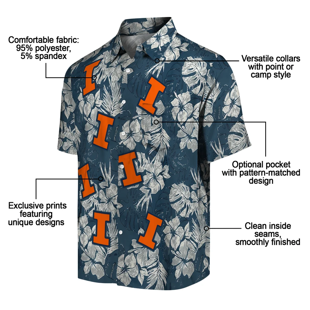 Illinois Fighting Illini Hawaiian Shirt – Hibiscus Flowers