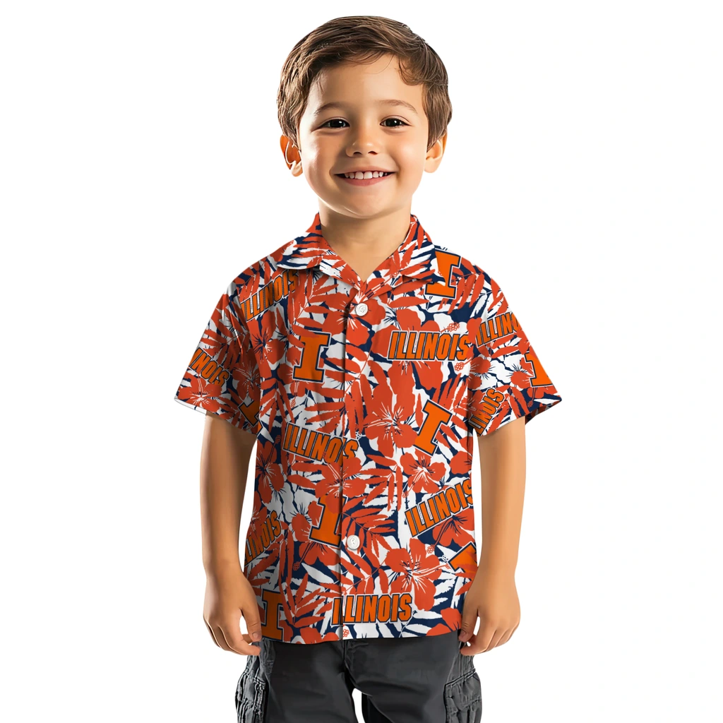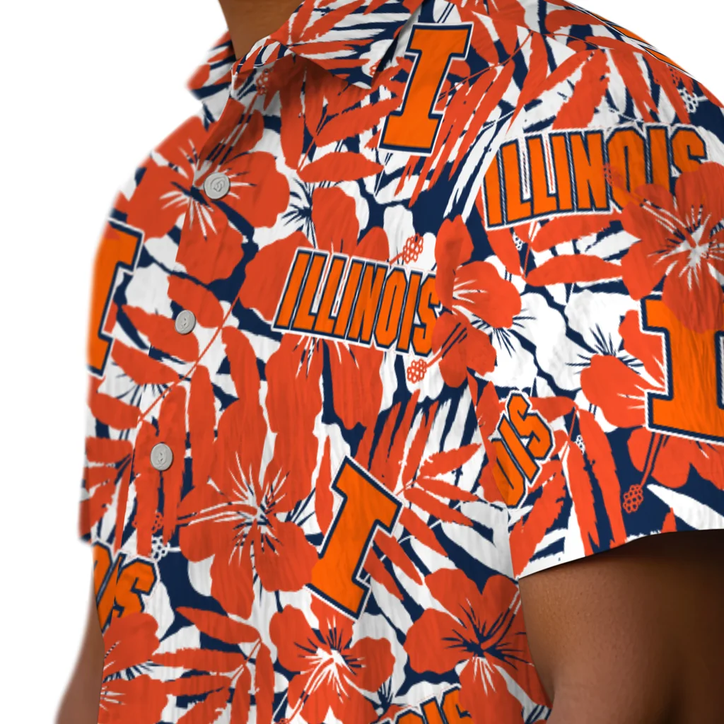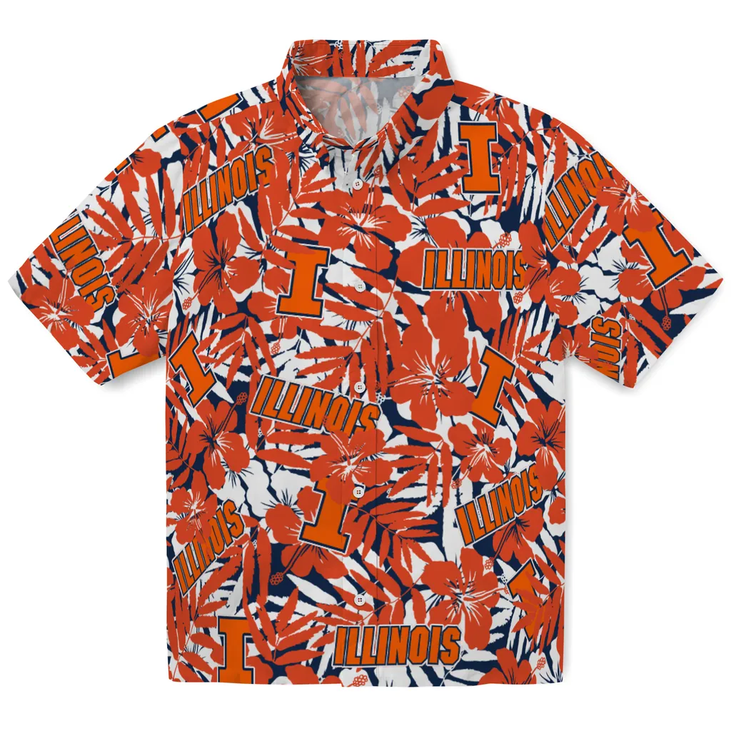 Illinois Fighting Illini Hawaiian Shirt – Hibiscus Overlay