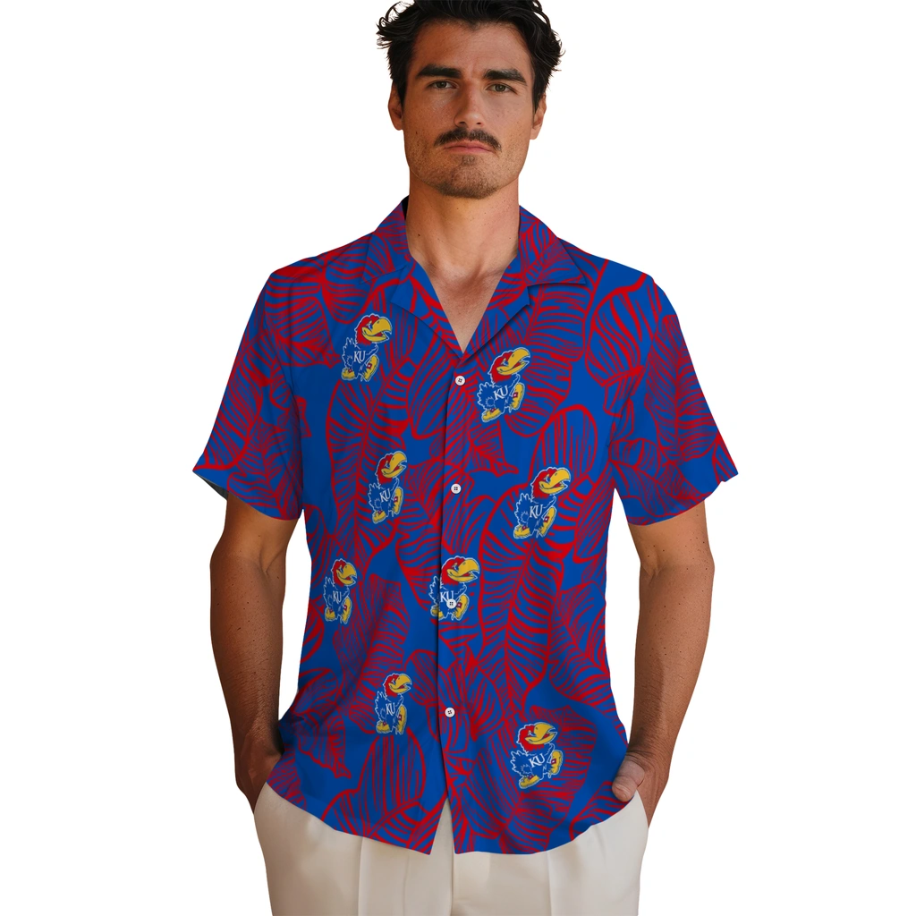 Kansas Jayhawks Hawaiian Shirt – Leaf Outline