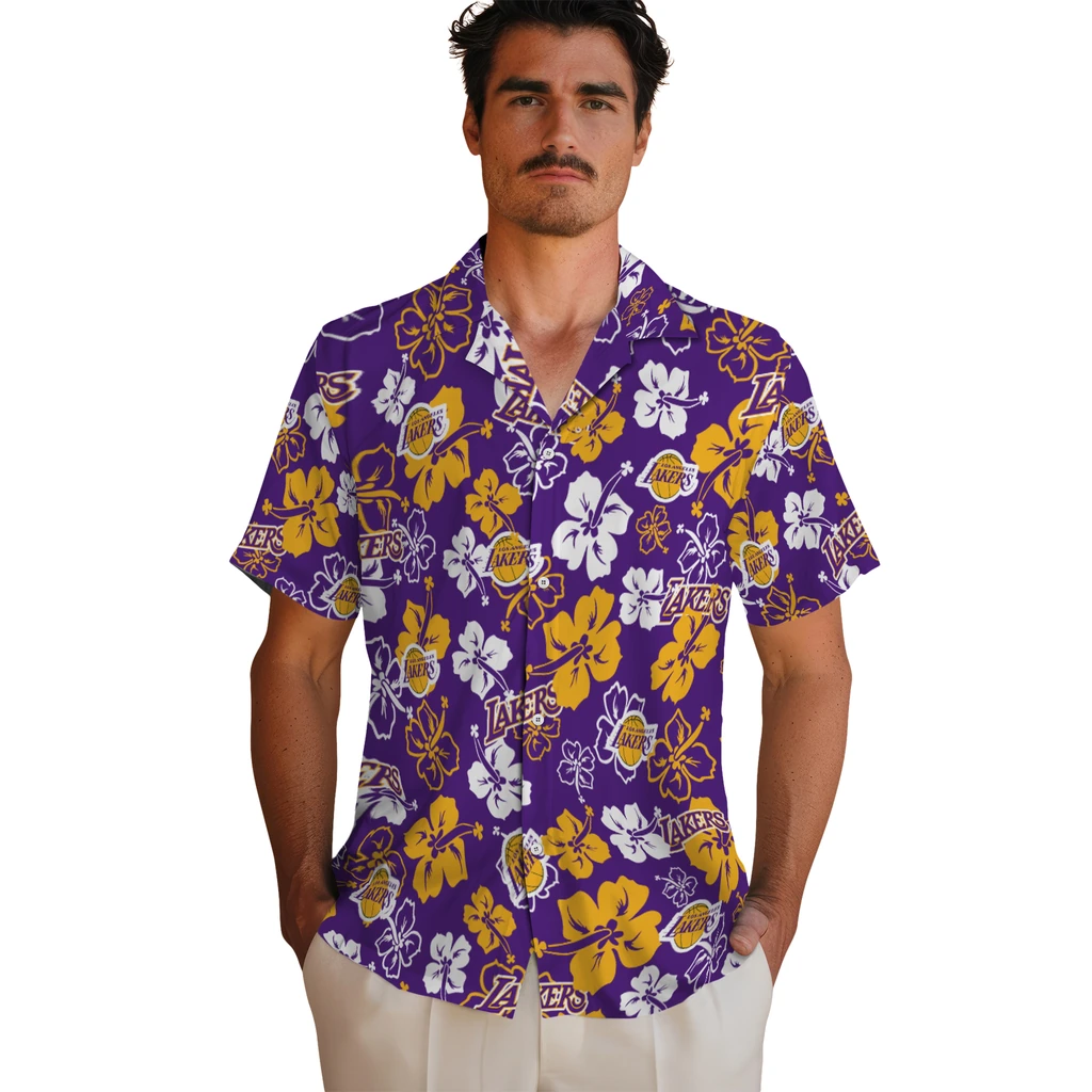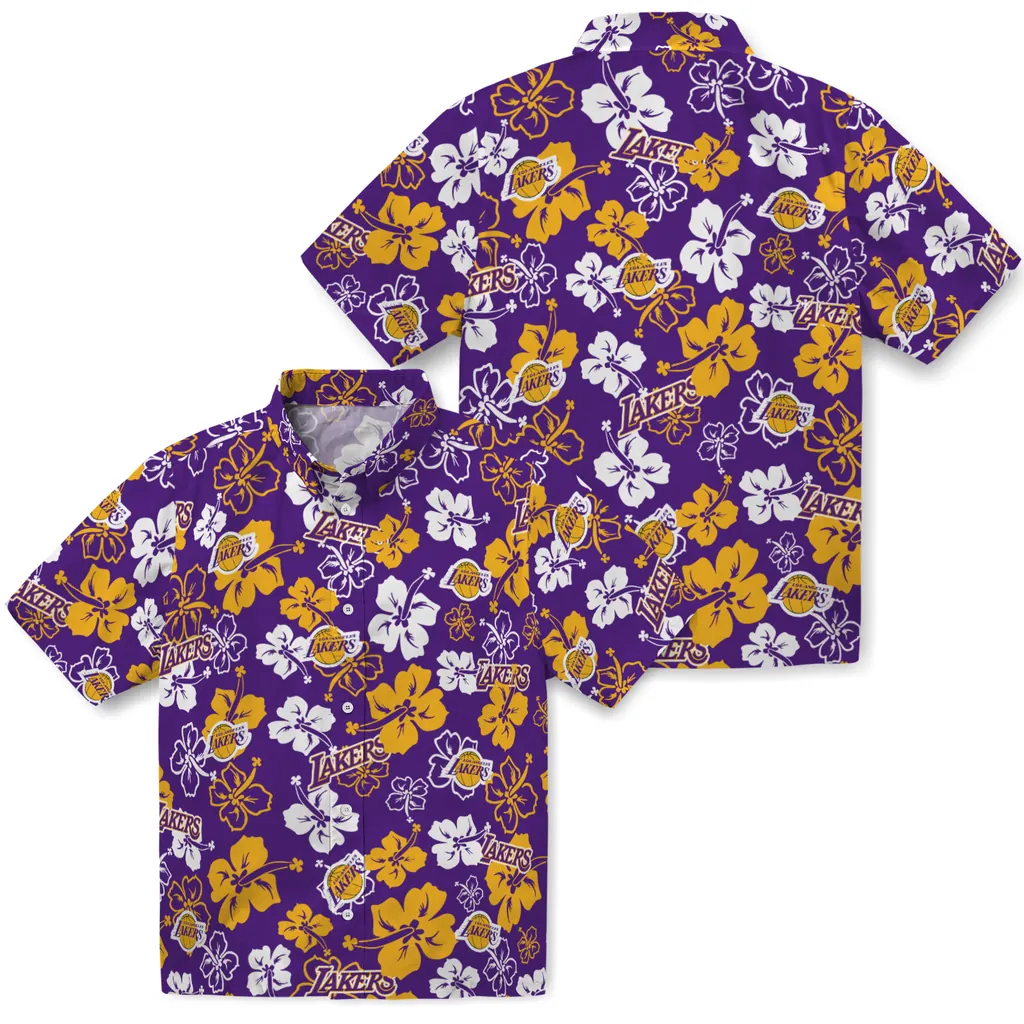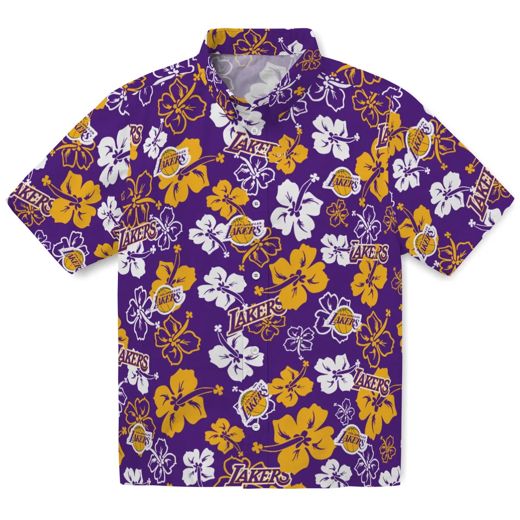 Los Angeles Lakers Hawaiian Shirt – Hibiscus Flower Design