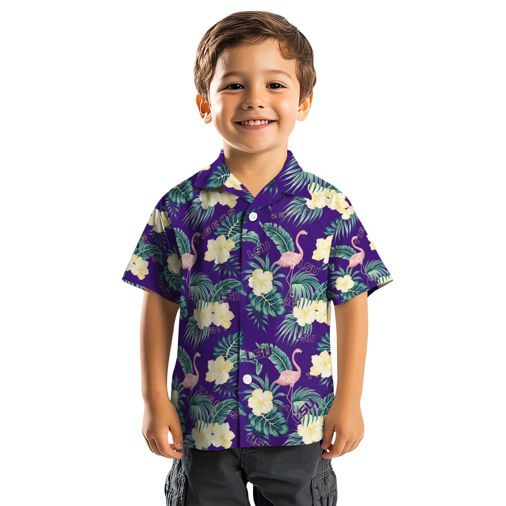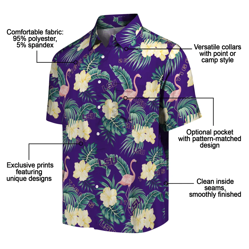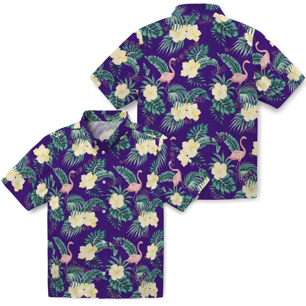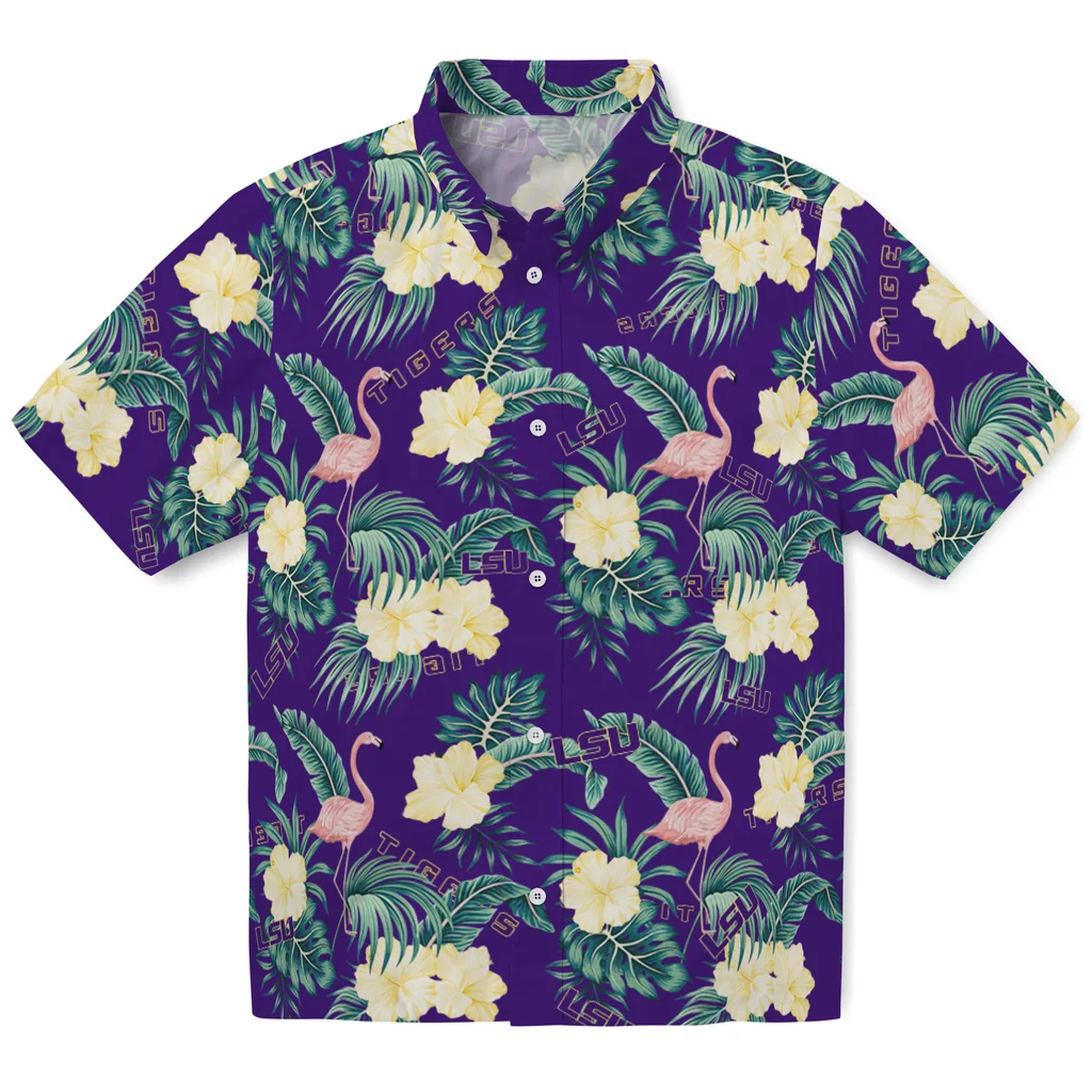 LSU Tigers Hawaiian Shirt – Flamingo and Hibiscus