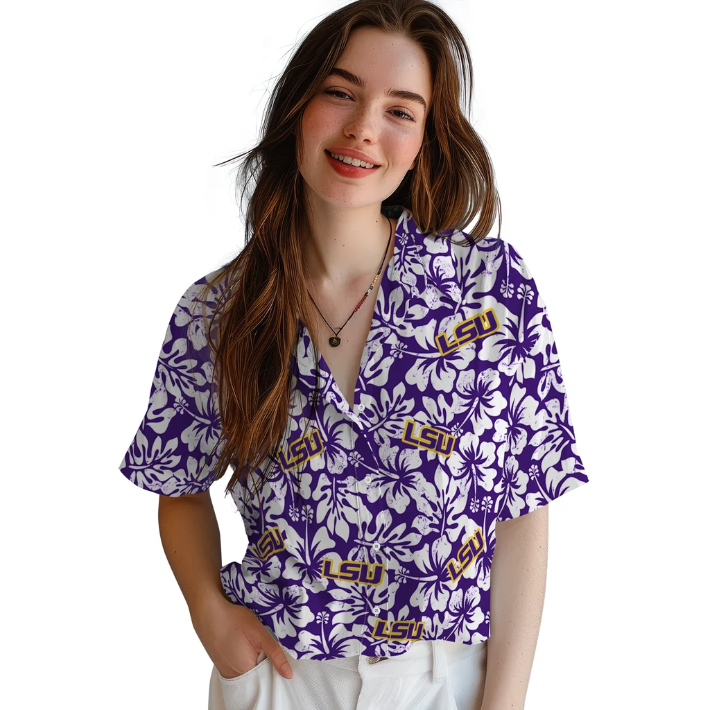 LSU Tigers Hawaiian Shirt – Hibiscus Motif