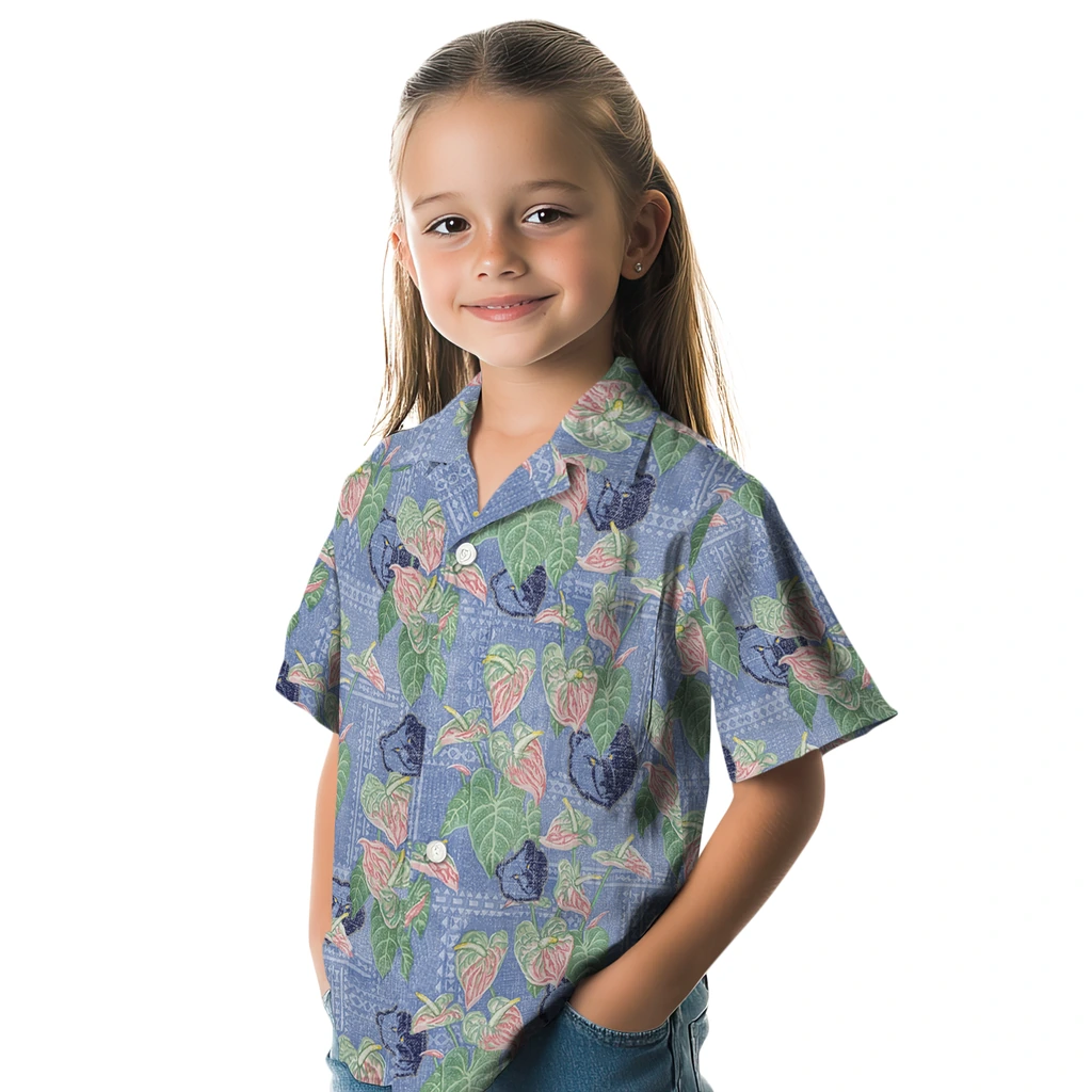 Show your Memphis Grizzlies spirit in tropical style. Tropical leaves and anthurium accented with team logo for a vibrant Hawaiian shirt. Available for men, women and kids. Great for matching looks.