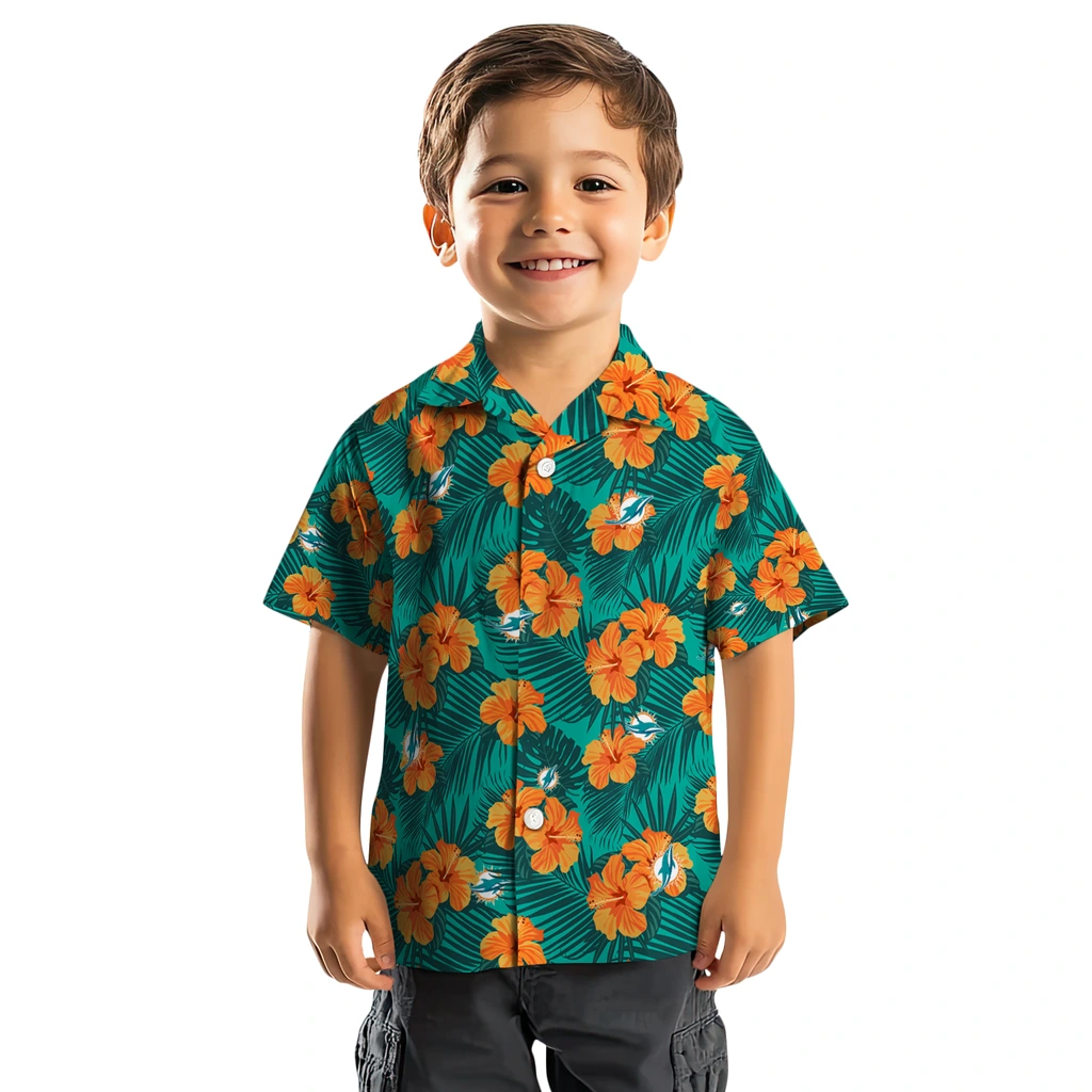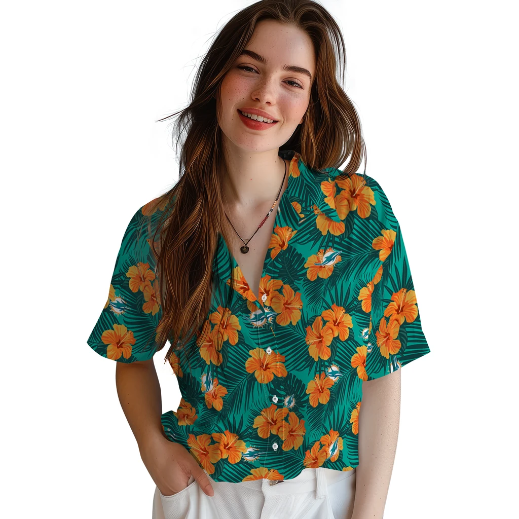 Miami Dolphins Hawaiian Shirt – Hibiscus and Palm Leaves