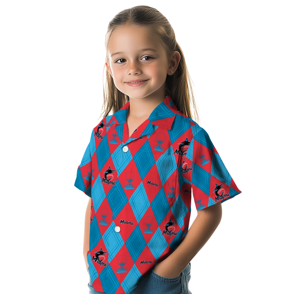 Show your Miami Marlins spirit in tropical style. Golf ball and plaid pattern highlighted by team logo for a sporty tropical style. Available for men, women and kids. Great for matching looks.