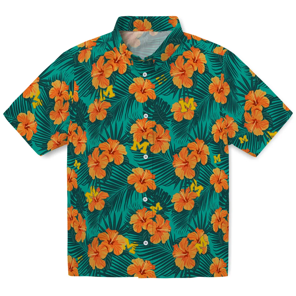 Michigan Wolverines Hawaiian Shirt – Hibiscus and Palm Leaves