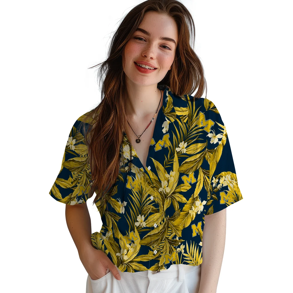 Michigan Wolverines Hawaiian Shirt – Palm Leaves