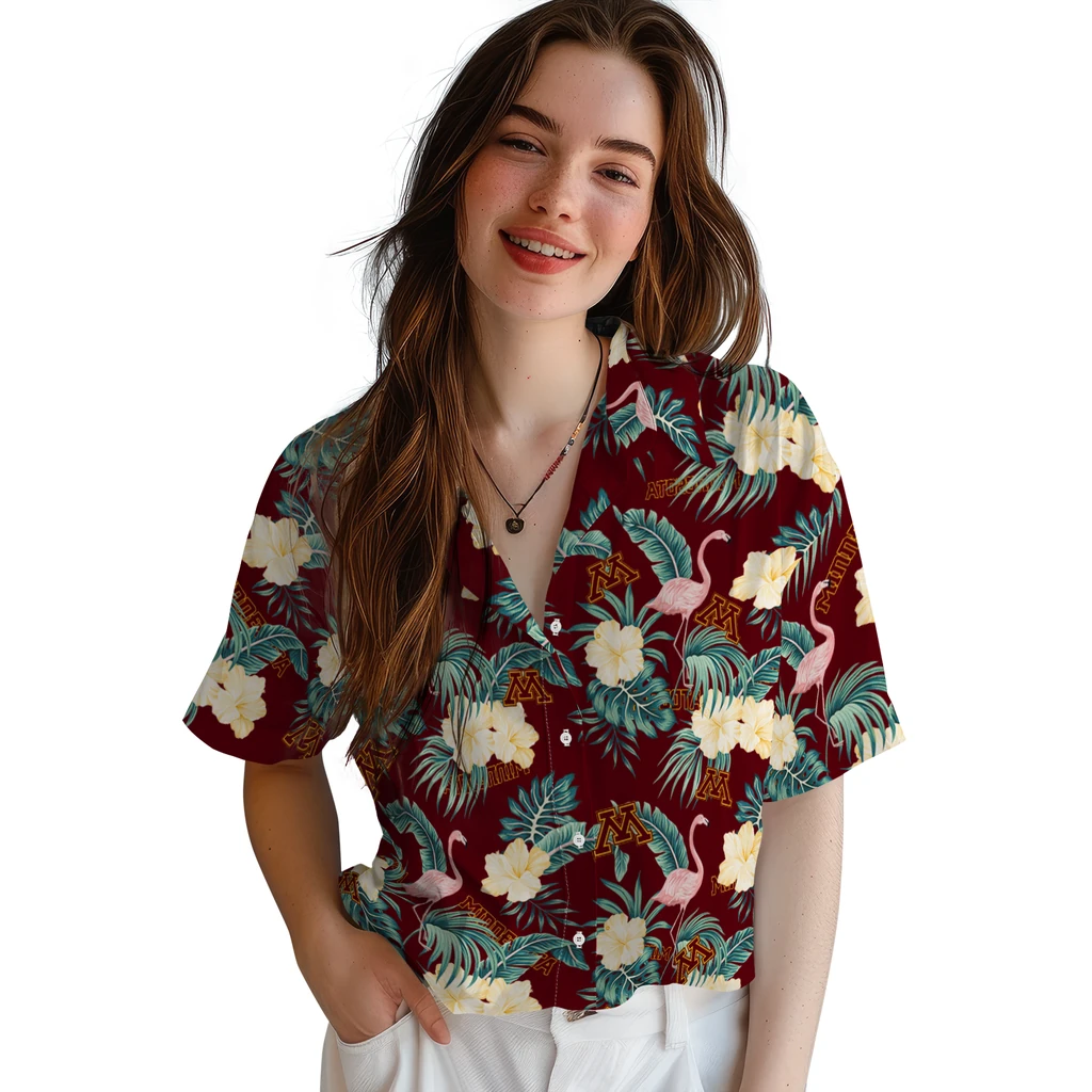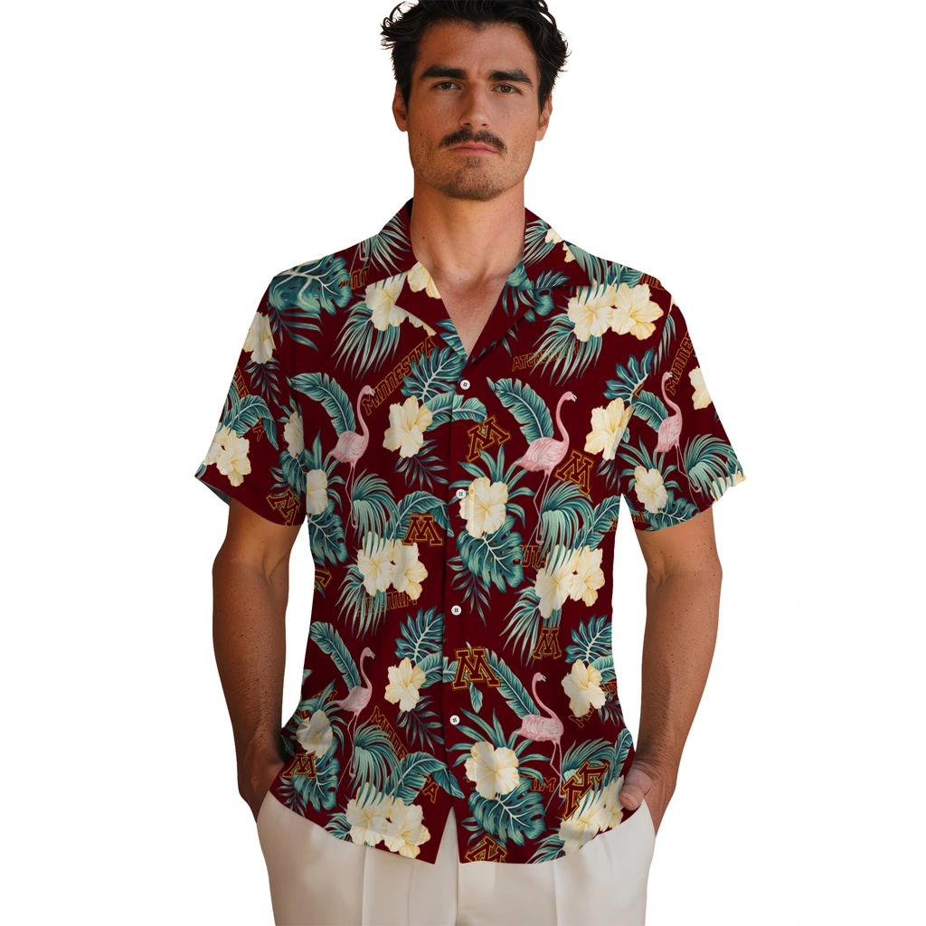 Minnesota Golden Gophers Hawaiian Shirt – Flamingo and Hibiscus