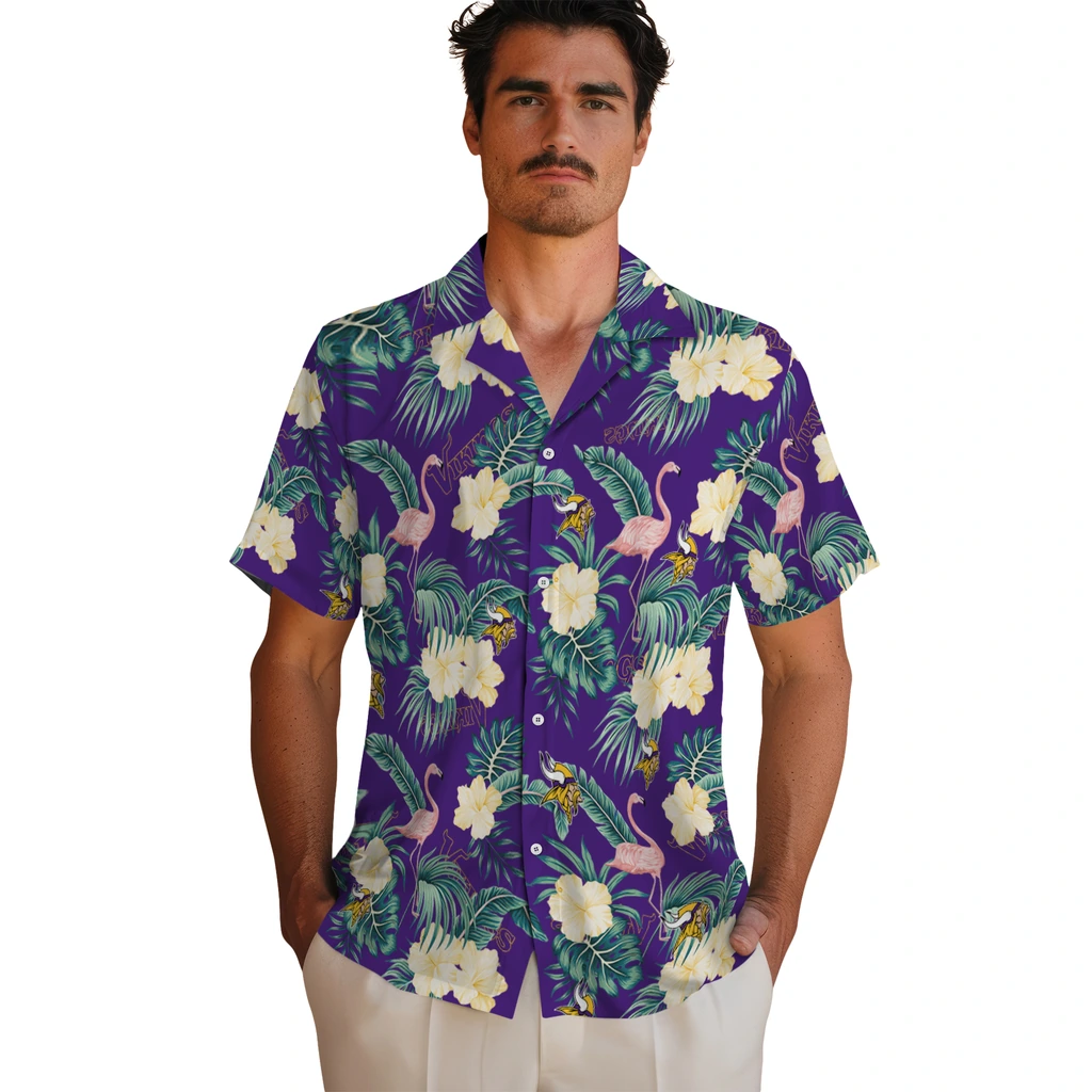 Minnesota Vikings Hawaiian Shirt – Flamingo and Hibiscus