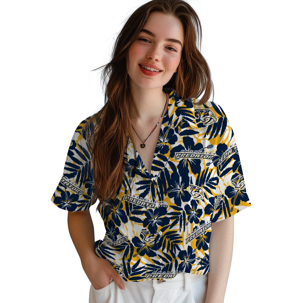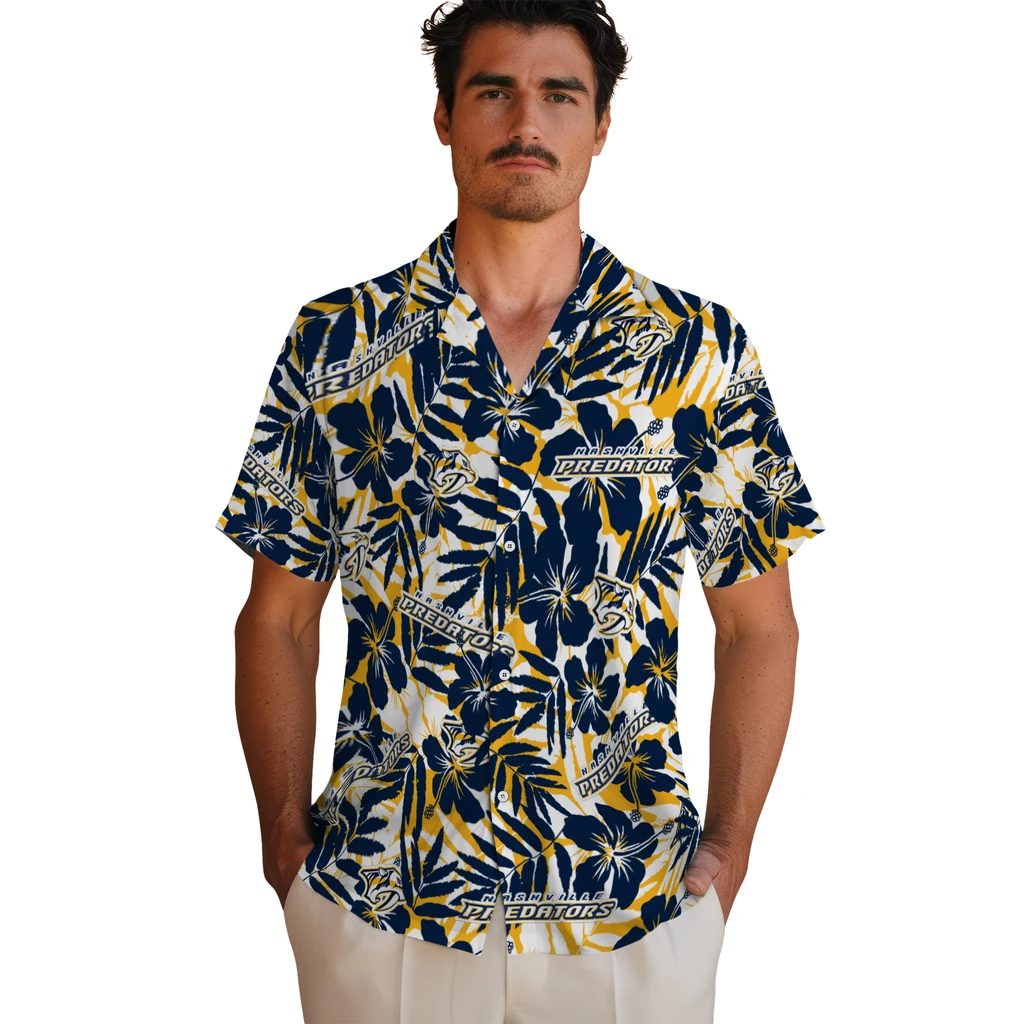 Nashville Predators Hawaiian Shirt – Hibiscus Overlay