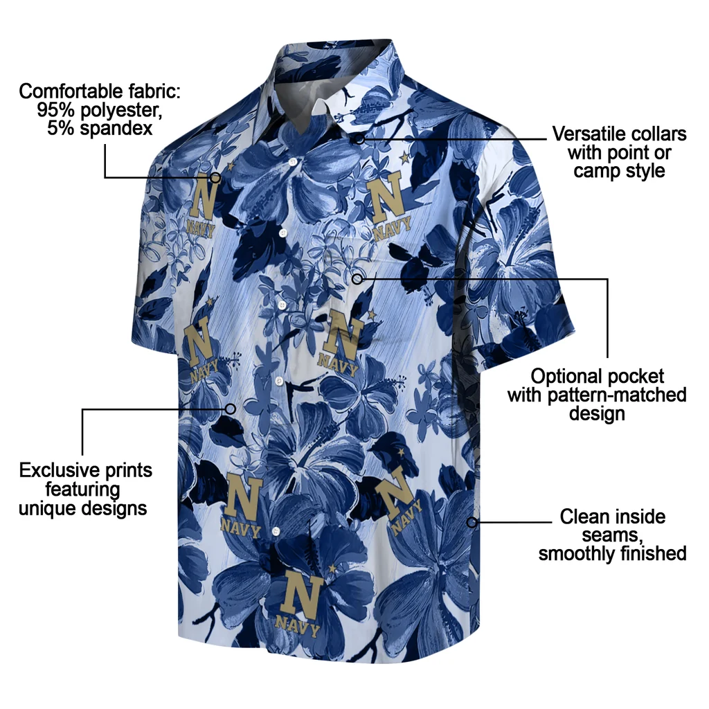 Navy Midshipmen Hawaiian Shirt – Hibiscus Arrangement