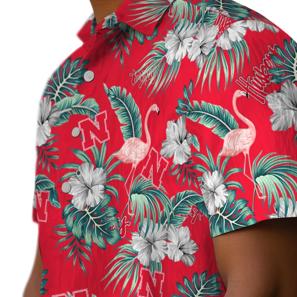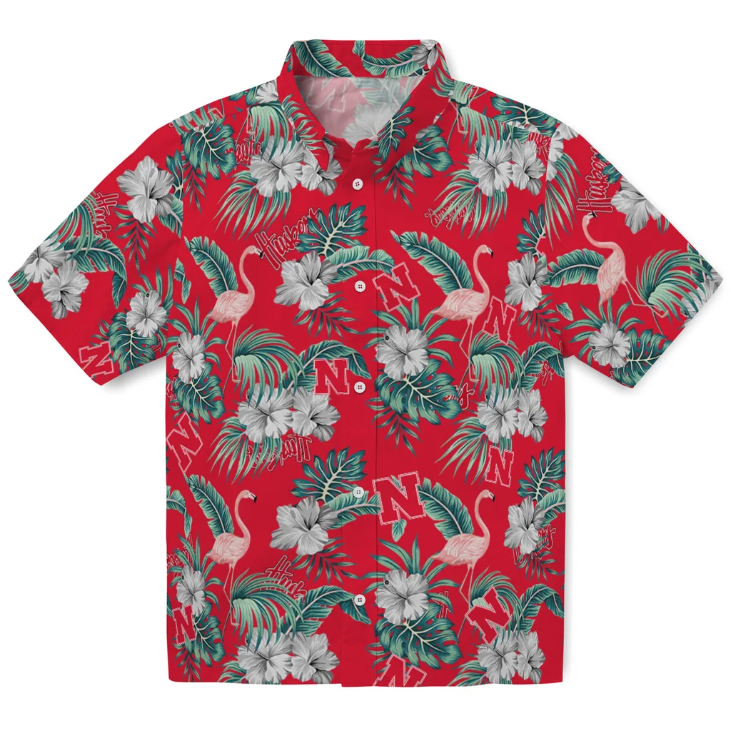 Nebraska Cornhuskers Hawaiian Shirt – Flamingo and Hibiscus