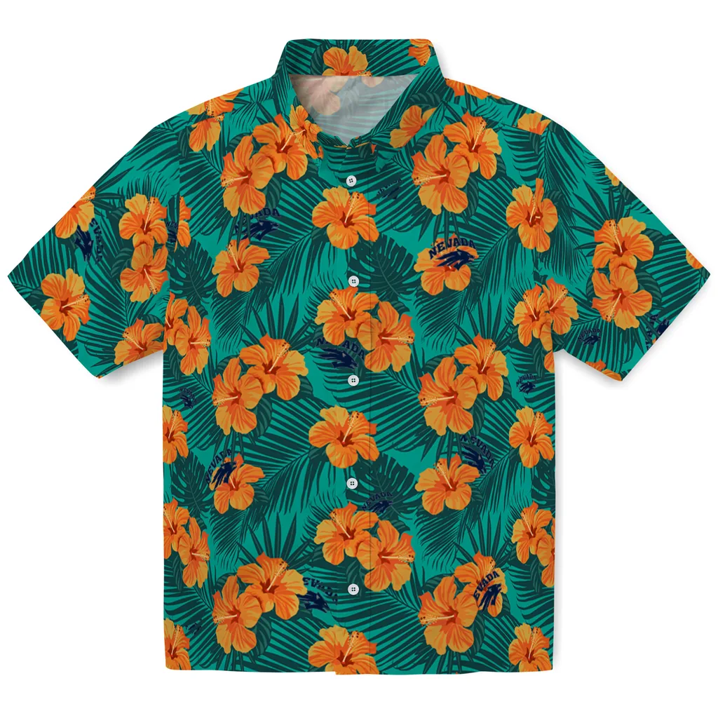 Nevada Wolf Pack Hawaiian Shirt – Hibiscus and Palm Leaves