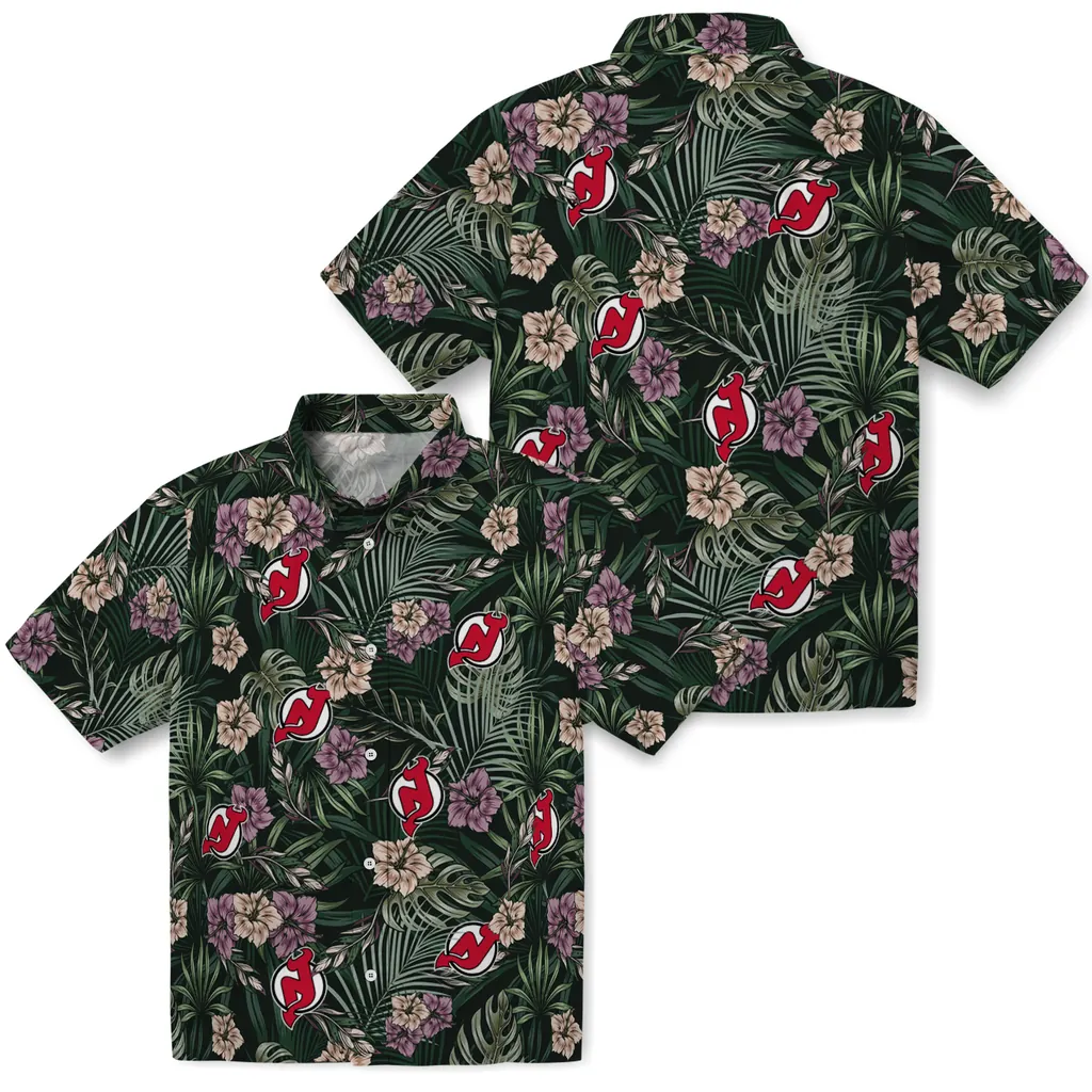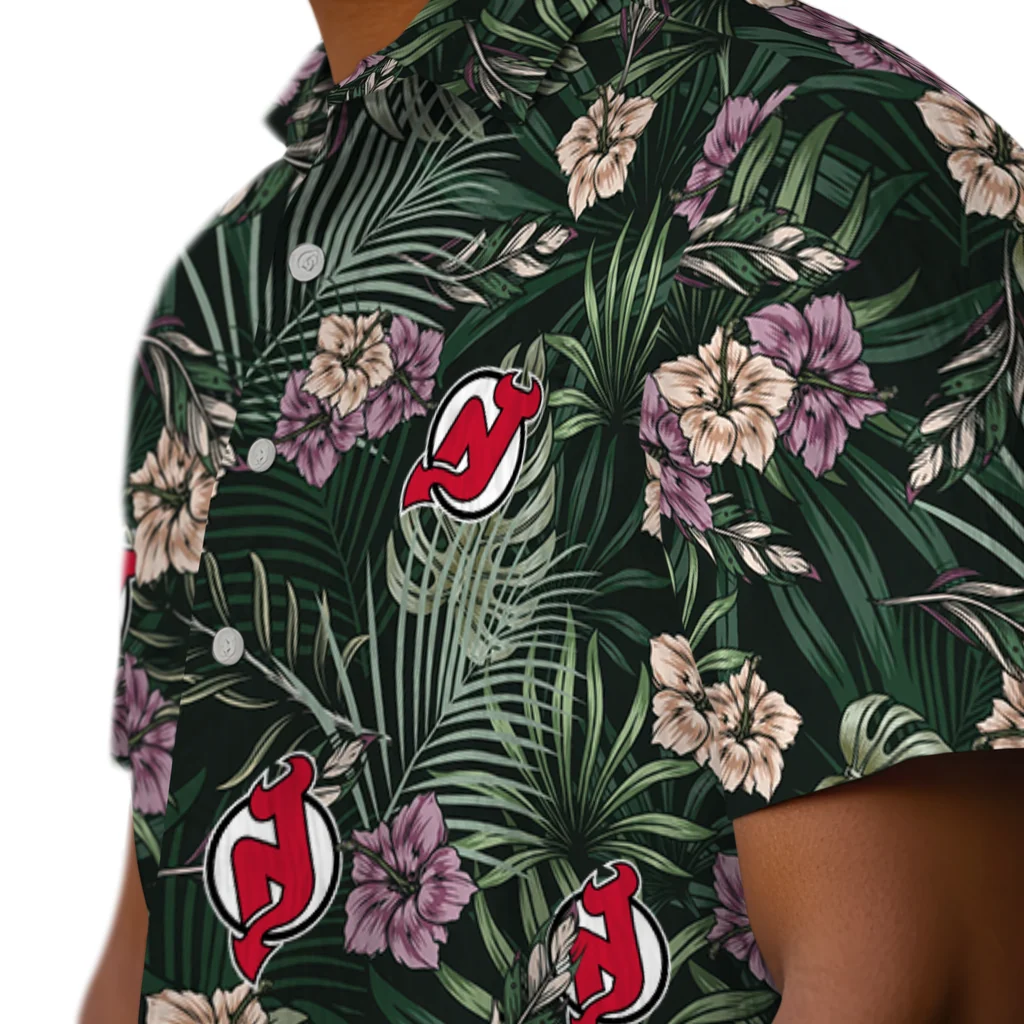 New Jersey Devils Hawaiian Shirt – Hibiscus Leaves Pattern