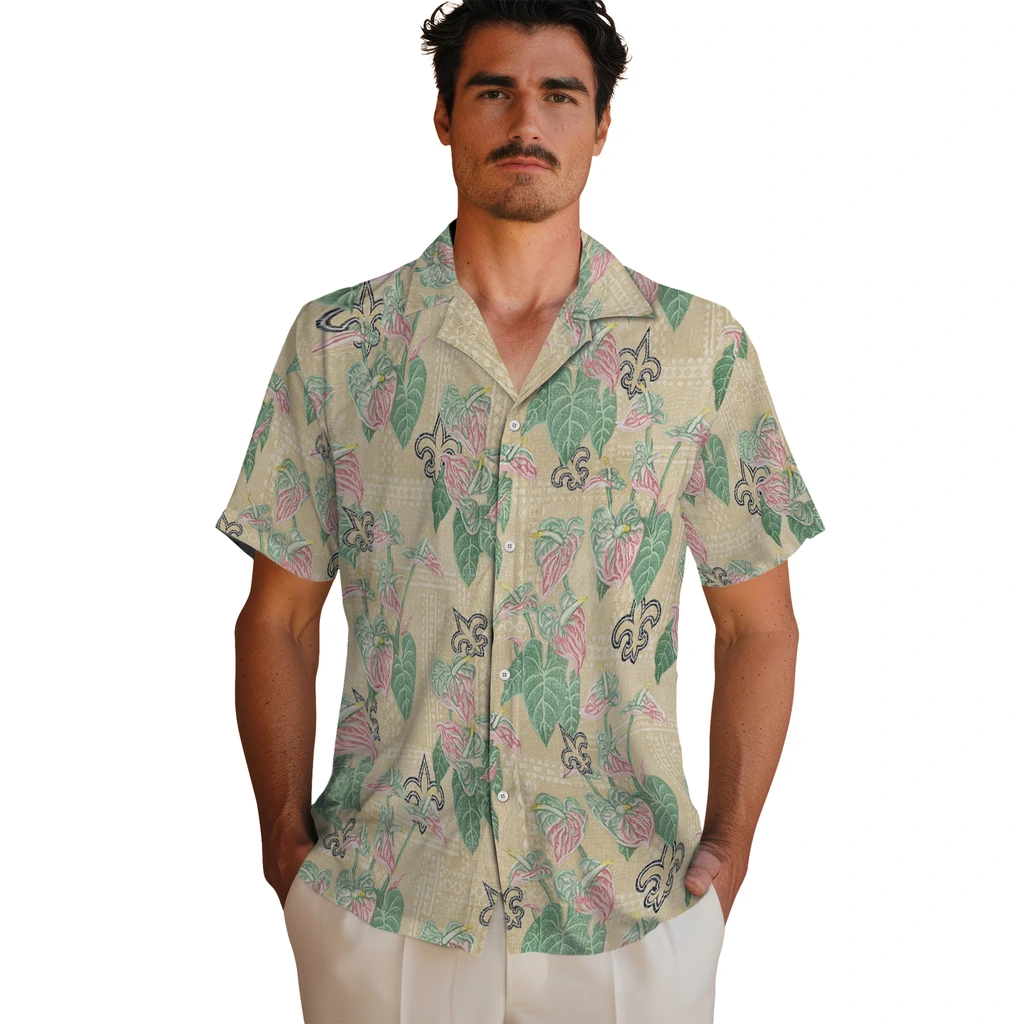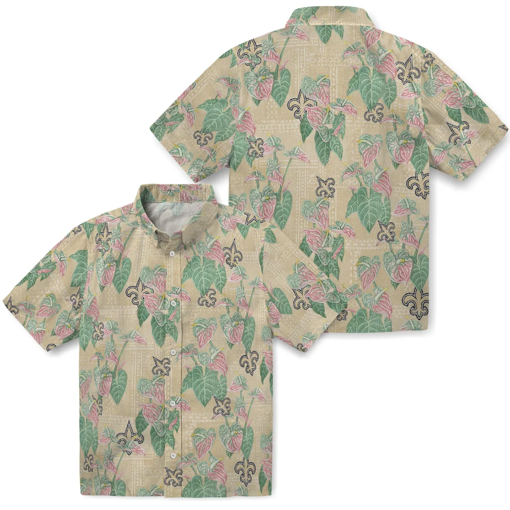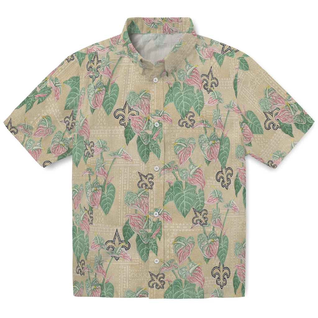 New Orleans Saints Hawaiian Shirt – Anthurium Overlay