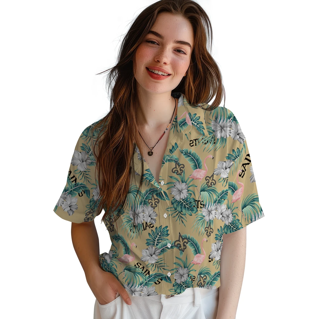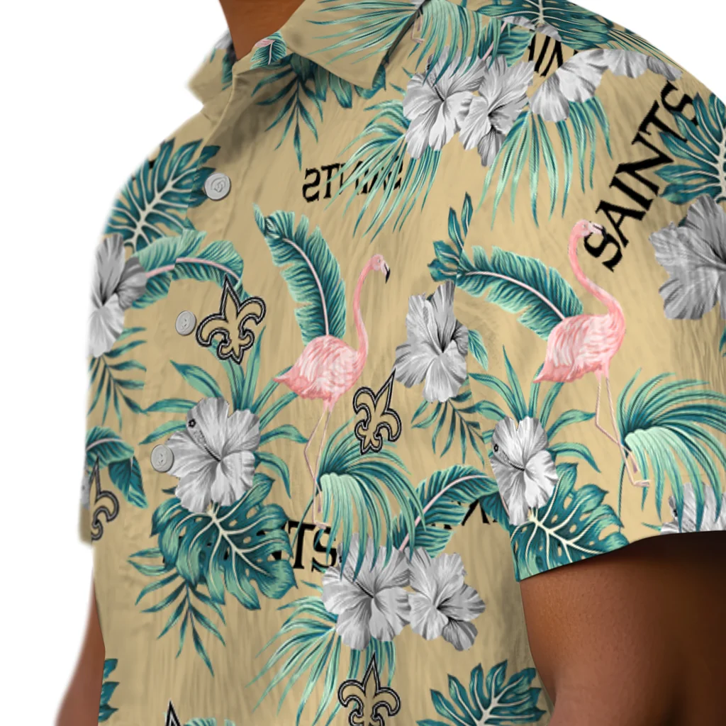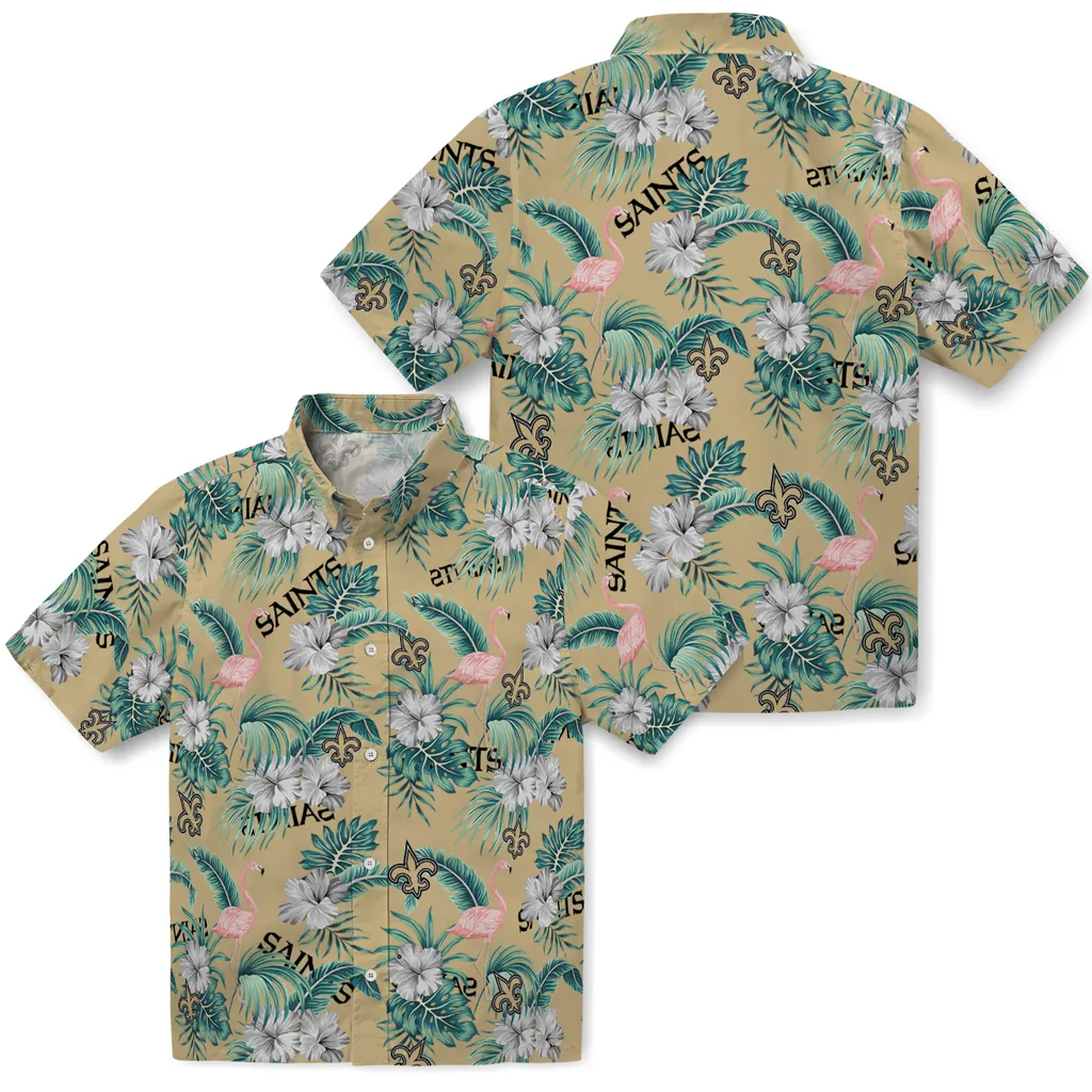 New Orleans Saints Hawaiian Shirt – Flamingo and Hibiscus