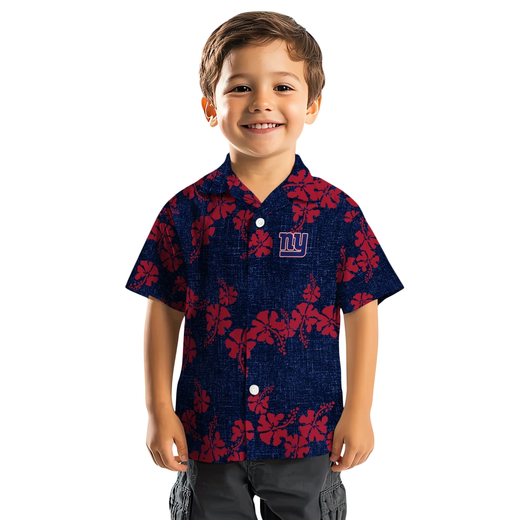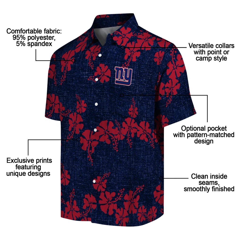 Show your New York Giants spirit in tropical style. Hibiscus blooms highlighted with team logo for a vibrant Hawaiian shirt. Available for men, women and kids. Great for matching looks.