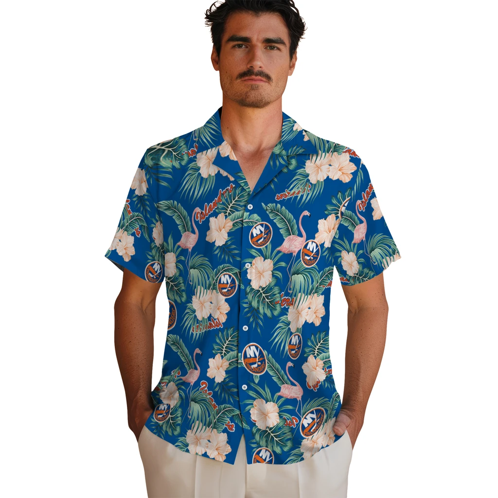 New York Islanders Hawaiian Shirt – Flamingo and Hibiscus