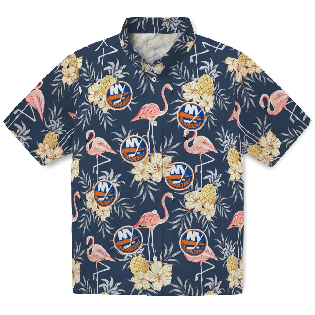 New York Islanders Hawaiian Shirt – Flamingo Hibiscus
