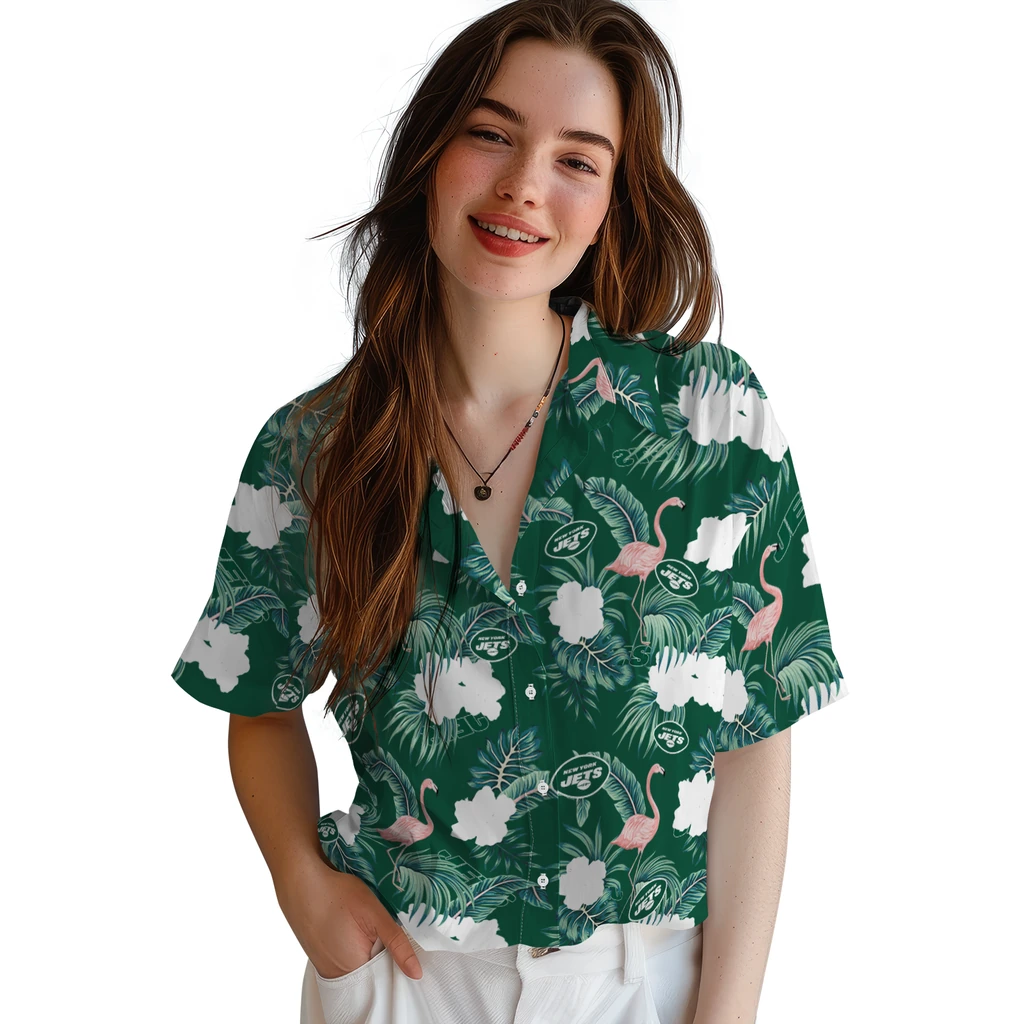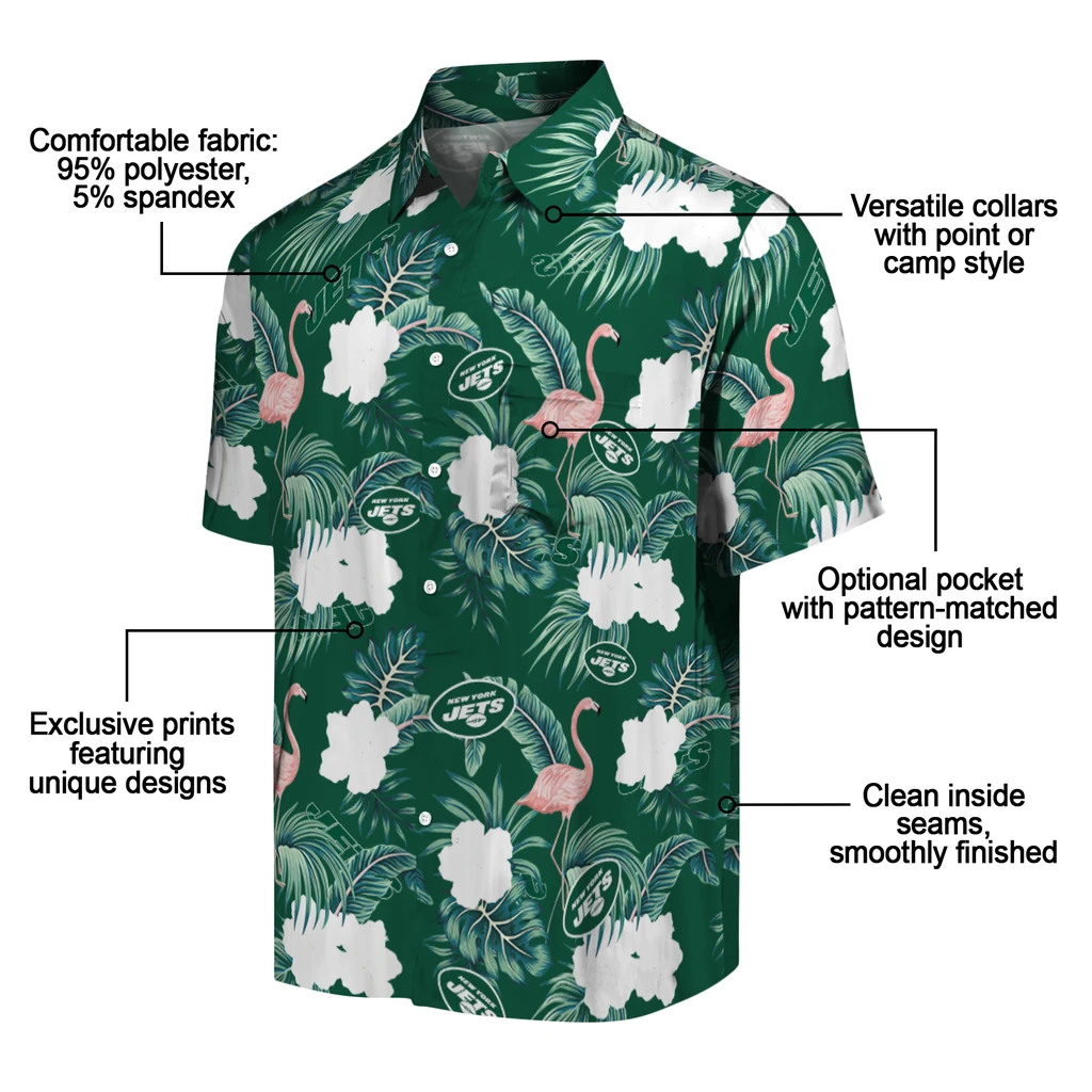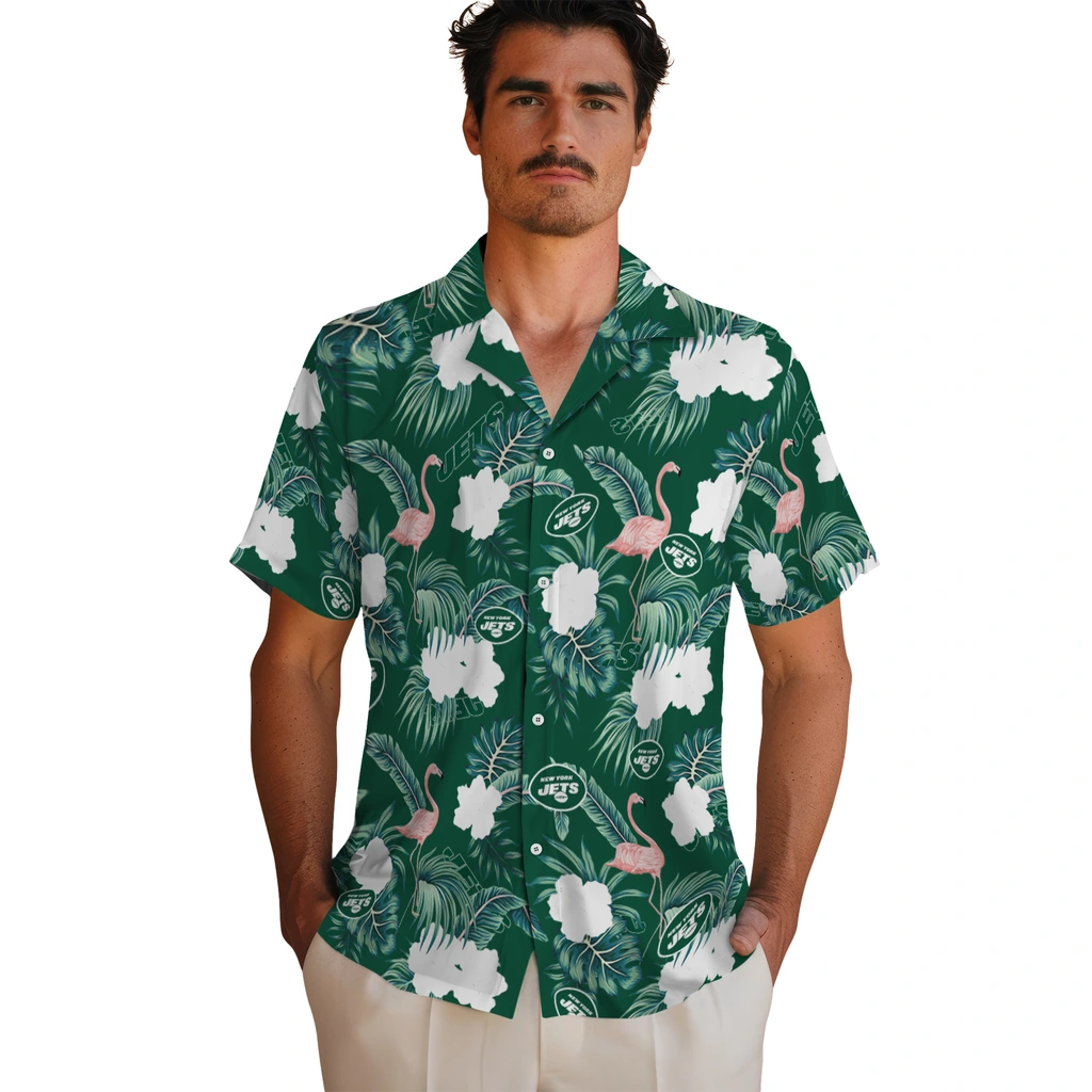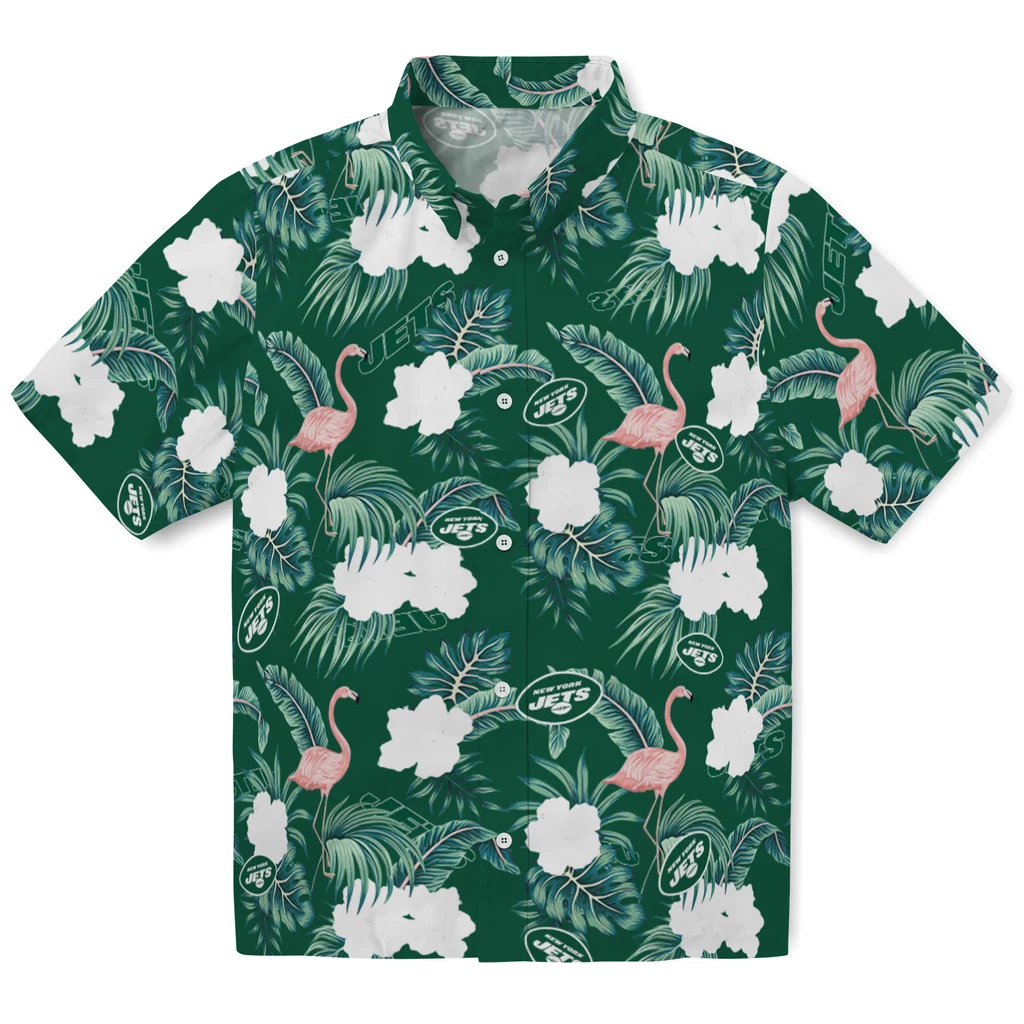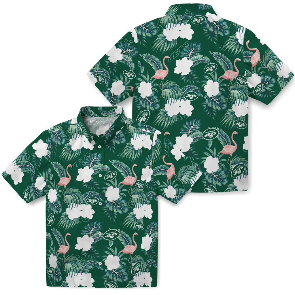 New York Jets Hawaiian Shirt – Flamingo and Hibiscus