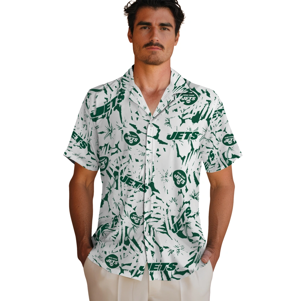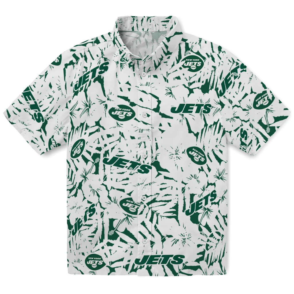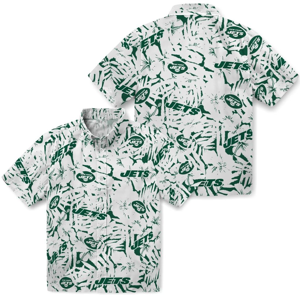 New York Jets Hawaiian Shirt – Hibiscus Overlay